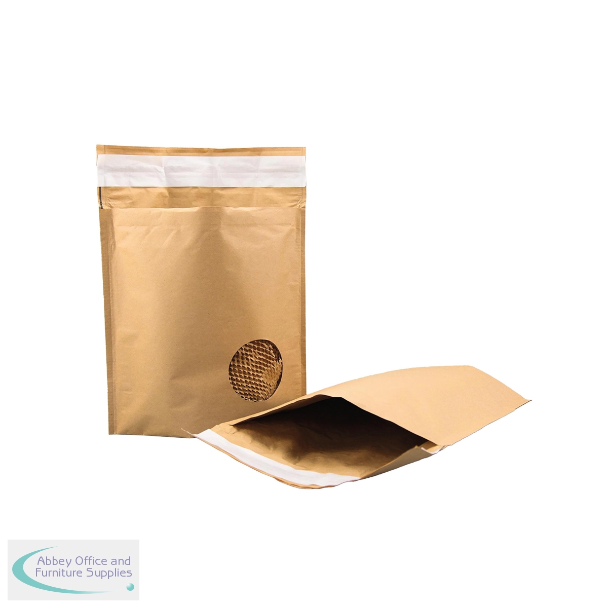 Offering even more protection than traditional bubble-lined envelopes, these envelopes are made from paper inside and out. These envelopes feature a honeycomb paper layer between kraft paper layers, offering sustainable shipping without compromising protection. Reducing weight and environmental impact, they are water-resistant without a plastic coating. The peel and seal strip ensures quick, efficient, and hassle-free closures. Supplied in a pack of 50, easy to recycle envelopes.