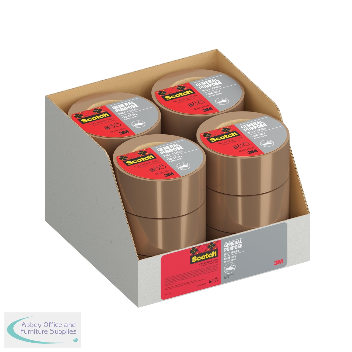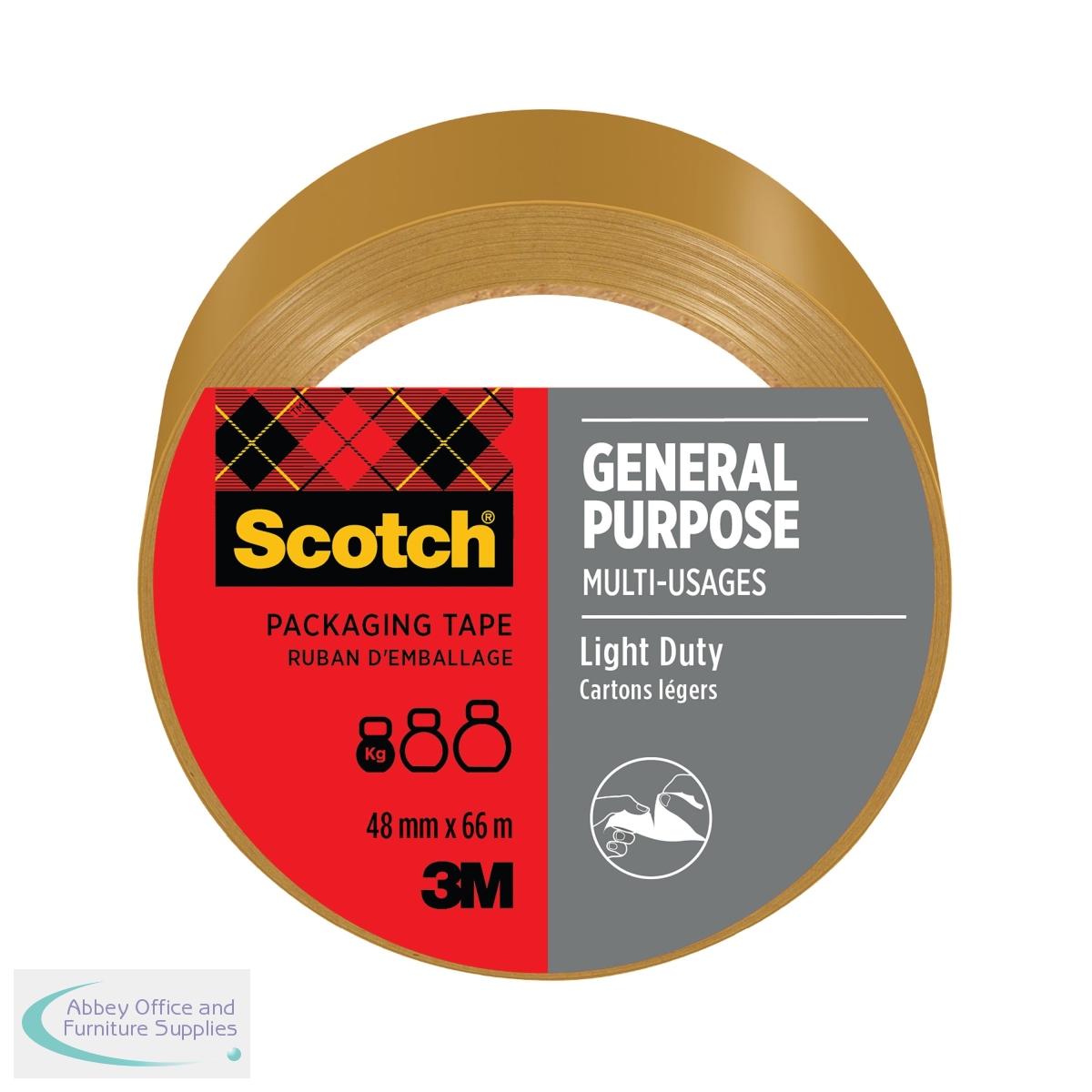 Scotch General Purpose Packaging Tape makes it easy to wrap, seal, and store lightweight packages at home or in the office. The general use packing tape features a long-lasting adhesive that securely seals packages in storage. Supplied in a 66m roll, this 48mm wide tape offers secure seal with low noise and smooth unwind which resists splitting and tearing on application.