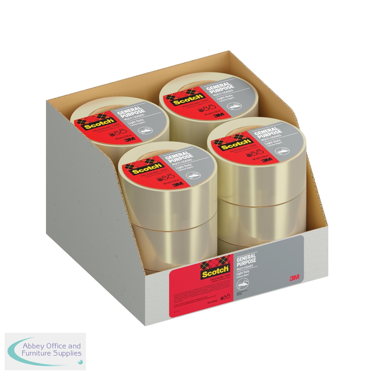 Scotch General Purpose Packaging Tape makes it easy to wrap, seal, and store lightweight packages at home or in the office. The general use packing tape features a long-lasting adhesive that securely seals packages in storage. Supplied in a 66m roll, this 48mm wide tape offers secure seal with low noise and smooth unwind which resists splitting and tearing on application.