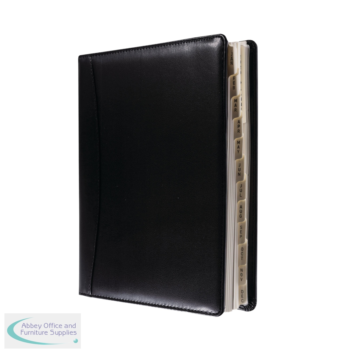 Ideal for professional use, this day per page diary from Collins comes in luxury padded faux leather cover and includes a pen holder and a zip-lock section for receipts and invoices. The diary is wirebound and refillable, so year on year you only need to replace the pages. Each day has its own page with hourly appointments from 8am to 8pm. The executive organiser also includes monthly Mylar tabbing, a removable A-Z personal directory and a notebook, along with current and forward year planners and 2 ribbon markers.