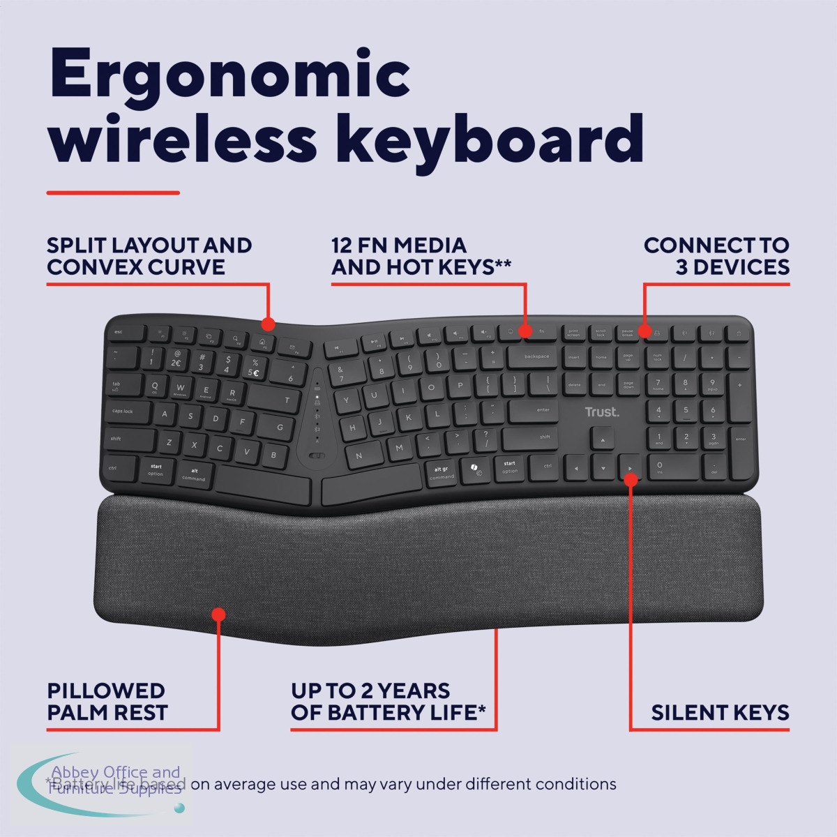 TRS25707 - Trust Keyra Ergonomic Multidevice Wireless Keyboard Black 25707