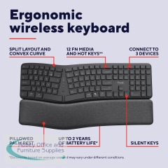 Ergonomic multidevice wireless split-layout keyboard for comfortable and productive working. it promotes natural hand and finger placement, along with more wrist support than regular keyboards.