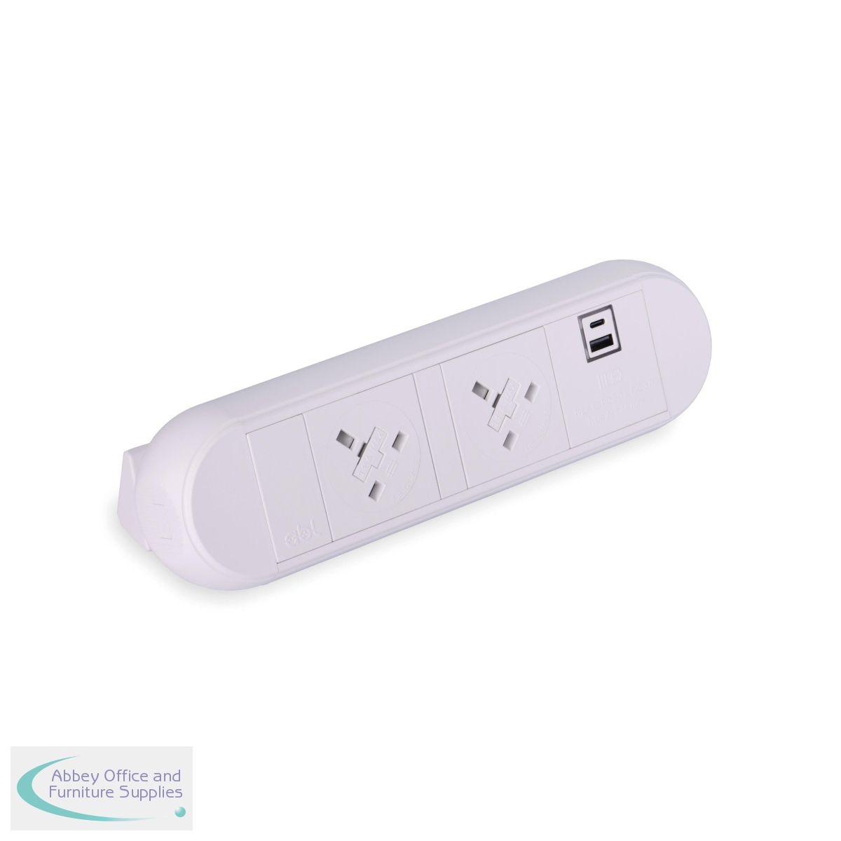 ABL95999 - On Desk Power Module 2xUK Socket 1xUSB A+C PD/QC Charger includes 2m Mains Lead White 20000015