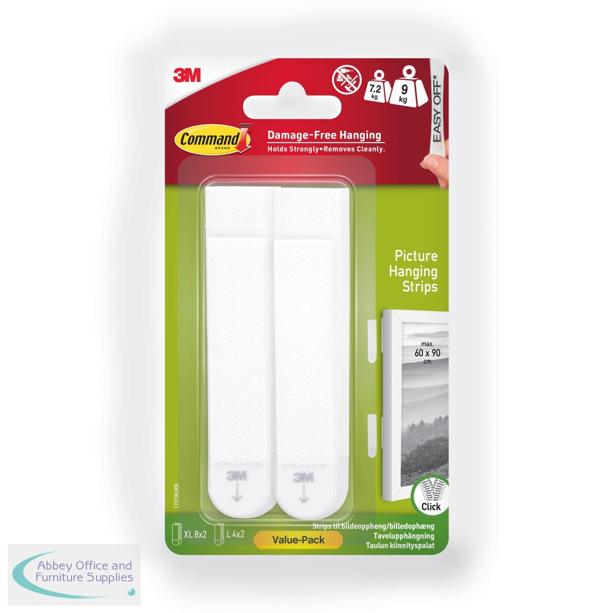 For use at home or in the office, these Picture Hanging Strips are easy to apply, hold on strongly and can be removed easily, without leaving blemishes on the wall. Without the need for nails or tools of any kind, these innovative picture hanging strips are suitable for heavy picture frames, with 40% more adhesive holding power compared to Command large picture hanging strips. This pack contains 24 (4 pairs of Large/8 pairs of XL) adhesive strips in white.