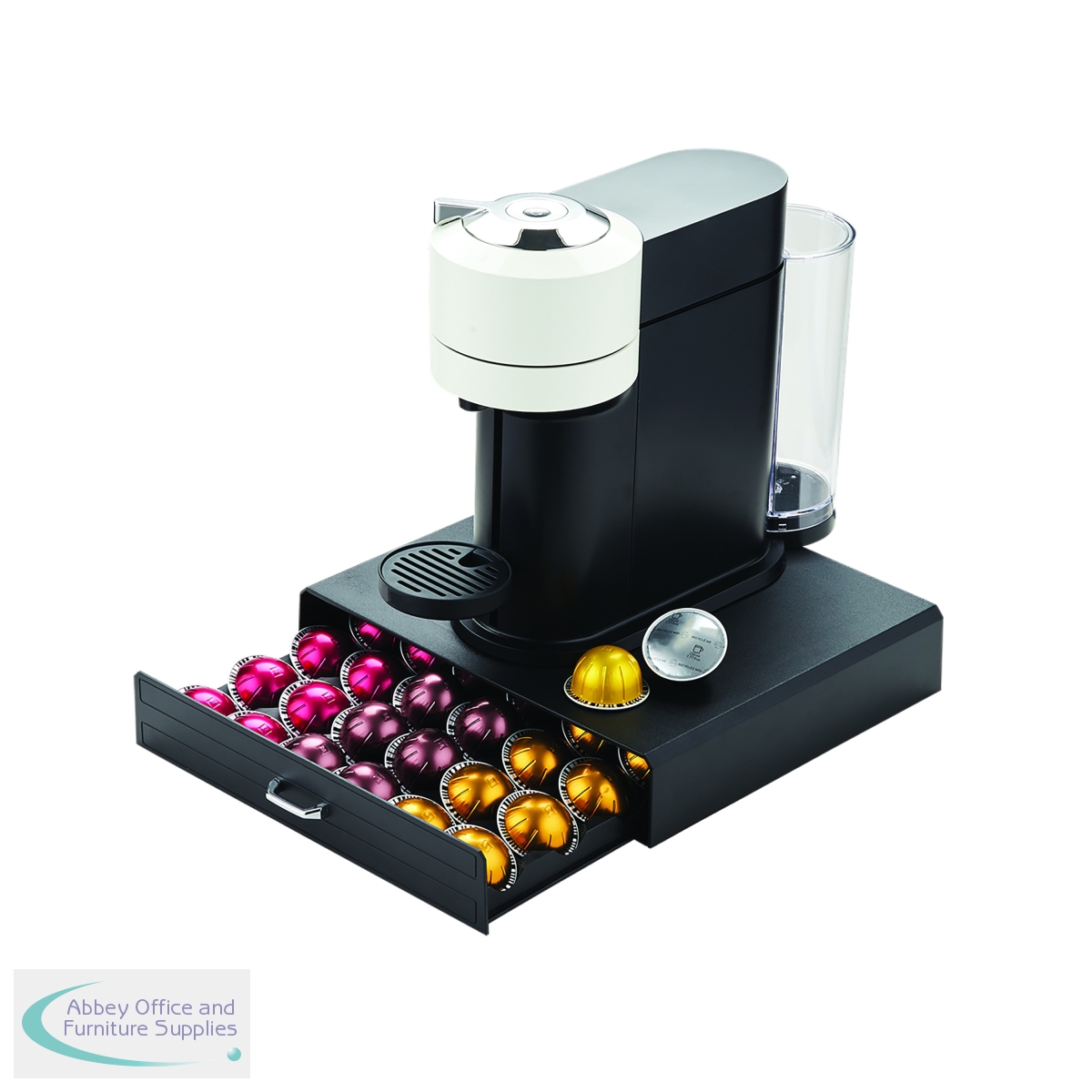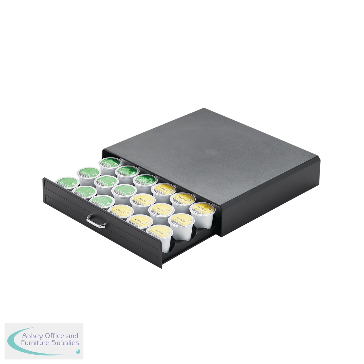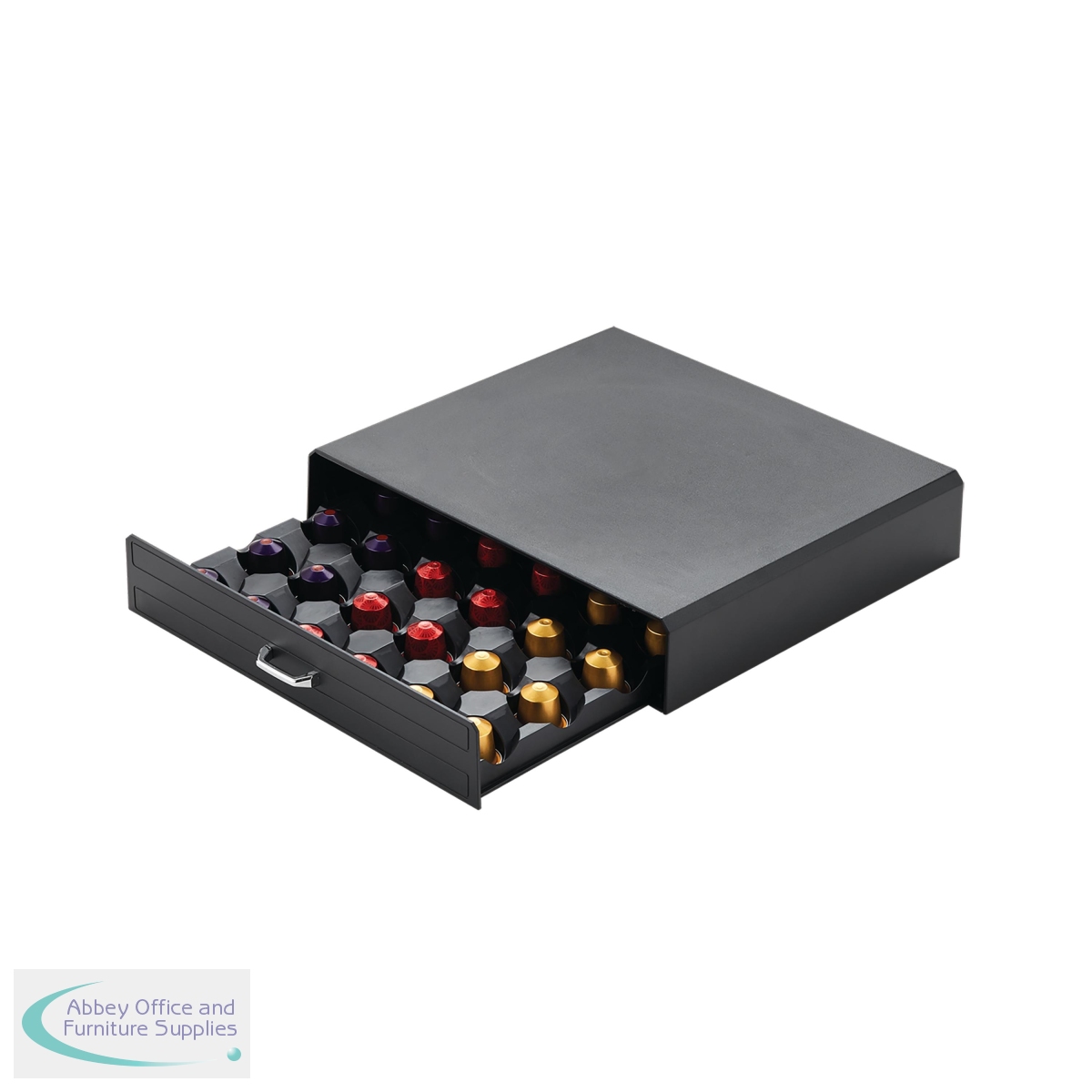 This MyCafe coffee capsule drawer is designed to hold coffee capsules. Ideal for storing and displaying single serve coffee capsules in shared kitchen areas. Supplied in black.