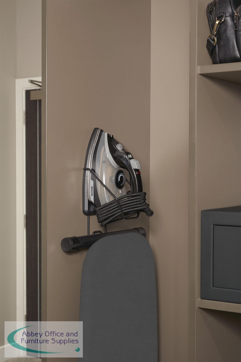 The Corby Oxford ironing board in black features a burn proof dark grey aluminised cover, which helps reflect heat for safe, fast and efficient ironing as well as preventing heat stains. Designed for both left and right-handed users with its dual sided opening mechanism your guests will be able to operate the lightweight Oxford ironing board with ease. Another great feature is the steam flow mesh board that allows steam to pass through clothing for effective ironing.