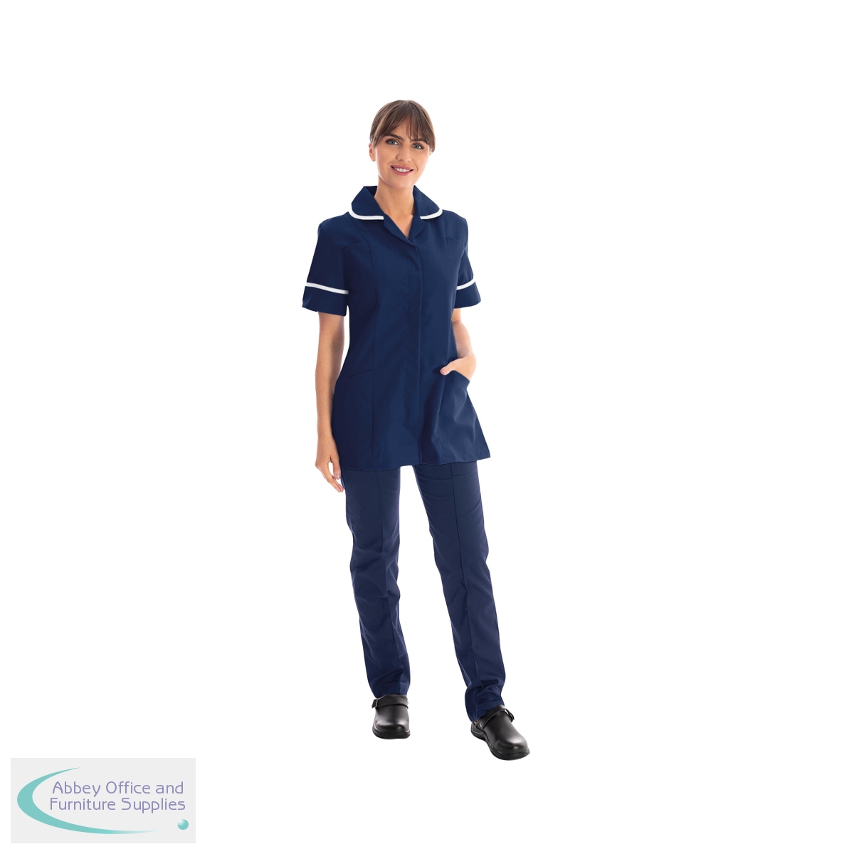 WIS22951 - Work in Style Female Nursing Tunic Navy with White Trim 34 Inch DVDTR/NAV/WHT/34