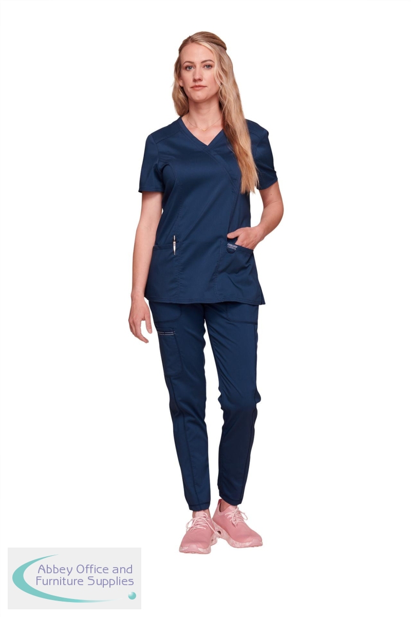 The Cherokee Revolution WW610 Women's Mock Wrap Top From the Cherokee Revolution range is this Women's Mock Wrap Top in a modern classic fit. A flattering and comfortable scrub top to fit all body types.