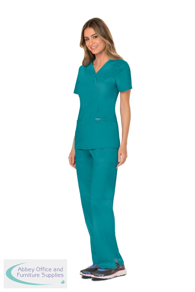The Cherokee Revolution WW610 Women's Mock Wrap Top From the Cherokee Revolution range is this Women's Mock Wrap Top in a modern classic fit. A flattering and comfortable scrub top to fit all body types.