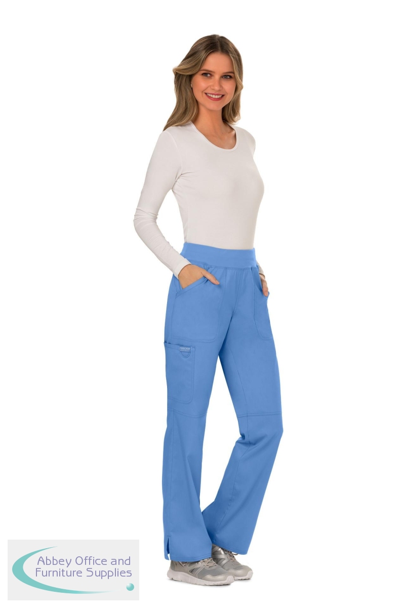 The Cherokee Revolution WW110 Women's Mid-Rise Pull-on Cargo Trouser From the Cherokee Revolution range. The cargo trousers, a classic trouser style with an elasticated waistband for added comfort.