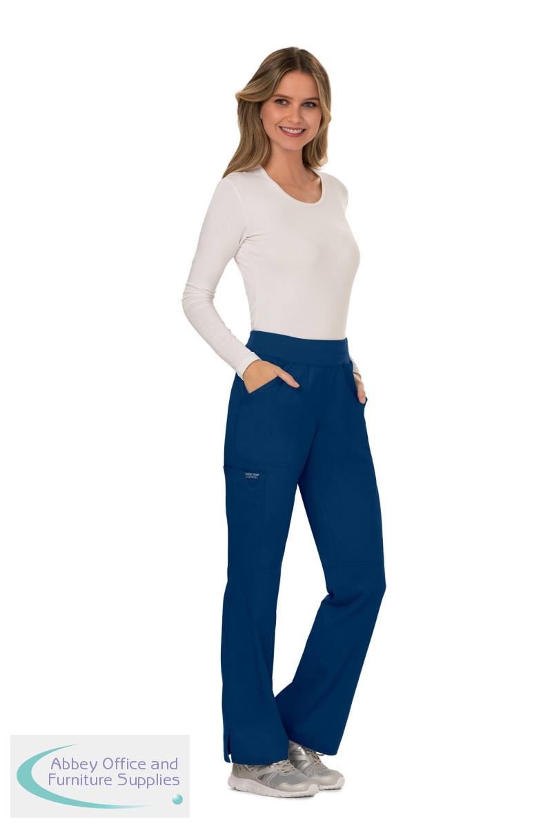The Cherokee Revolution WW110 Women's Mid-Rise Pull-on Cargo Trouser From the Cherokee Revolution range. The cargo trousers, a classic trouser style with an elasticated waistband for added comfort.