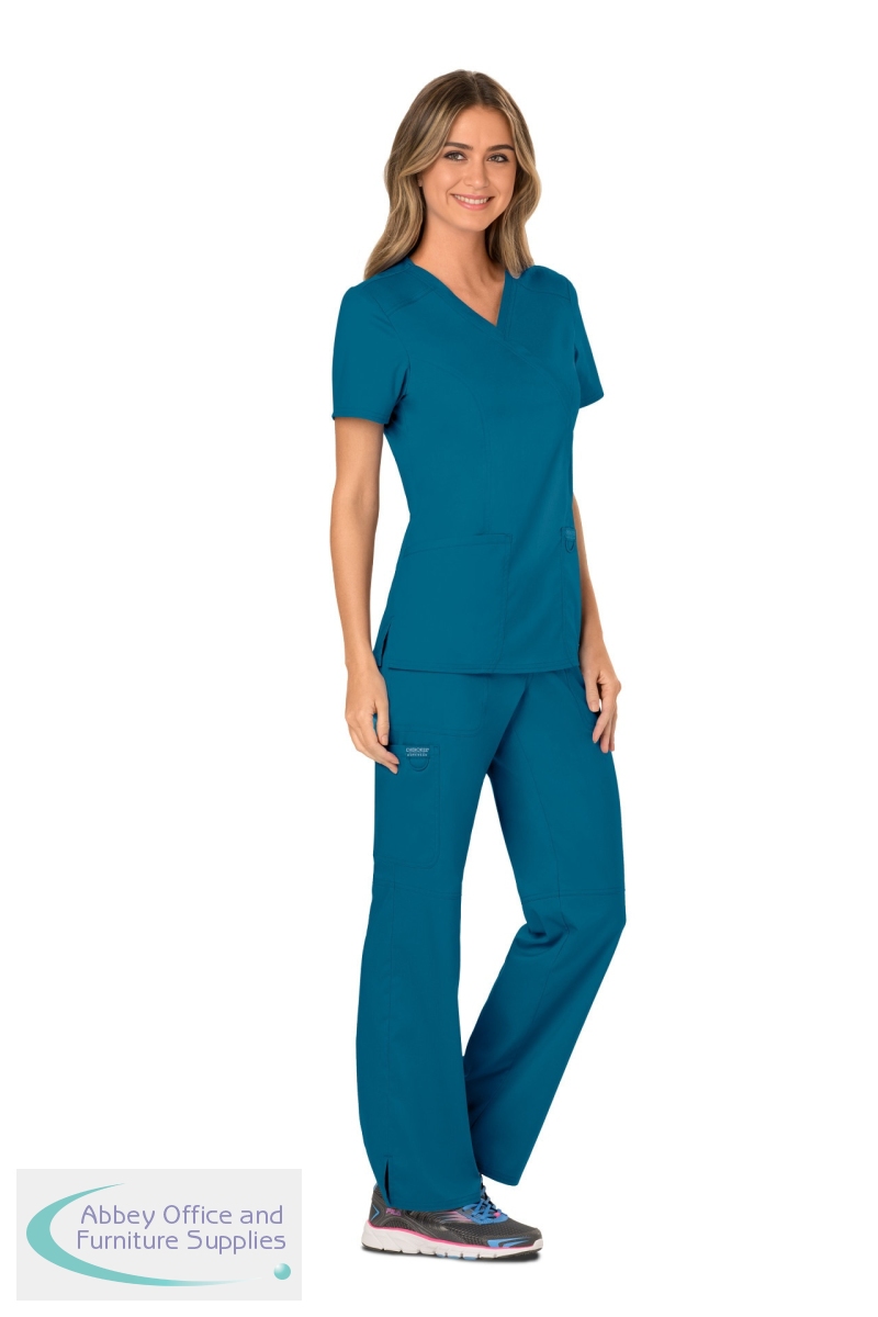 The Cherokee Revolution WW610 Women's Mock Wrap Top From the Cherokee Revolution range is this Women's Mock Wrap Top in a modern classic fit. A flattering and comfortable scrub top to fit all body types.