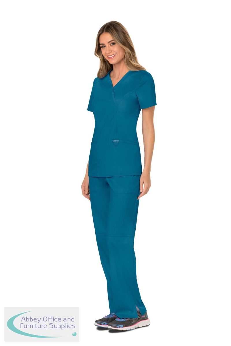 WIS90409 - Cherokee WW610 Revolution Mock Wrap Top Caribbean Blue S CHWW610/CARI/S