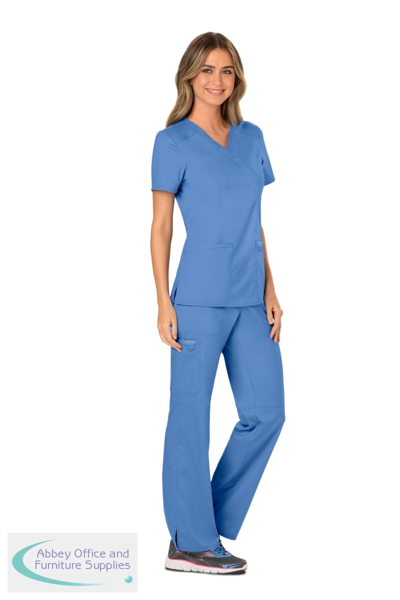 The Cherokee Revolution WW610 Women's Mock Wrap Top From the Cherokee Revolution range is this Women's Mock Wrap Top in a modern classic fit. A flattering and comfortable scrub top to fit all body types.