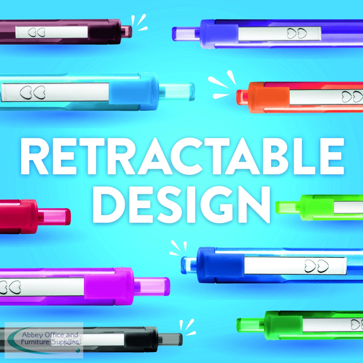 Click, smile, and go with the InkJoy 300RT retractable ballpoint pen. The ultra-smooth writing system prevents dragging and the comfortable rubberised grip provides optimal comfort when writing. Supplied in a pack of 24 black pens.