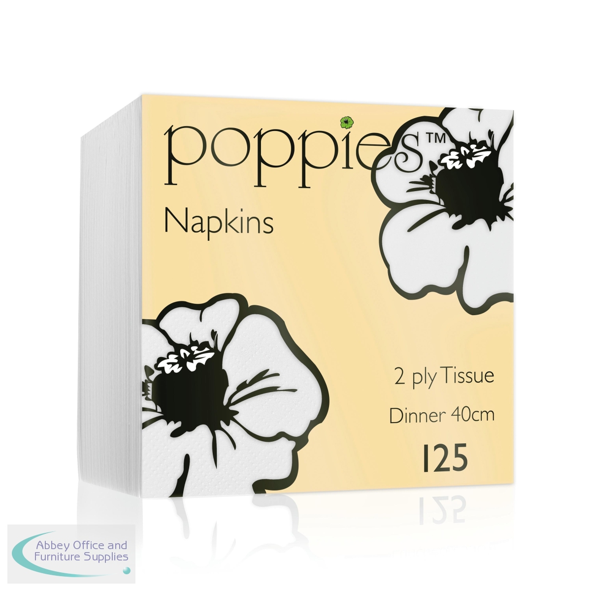 PIE32389 - Poppies 2-Ply Tissue Dinner Napkins 4 Fold White 40cm (Pack of 125) 4024WH
