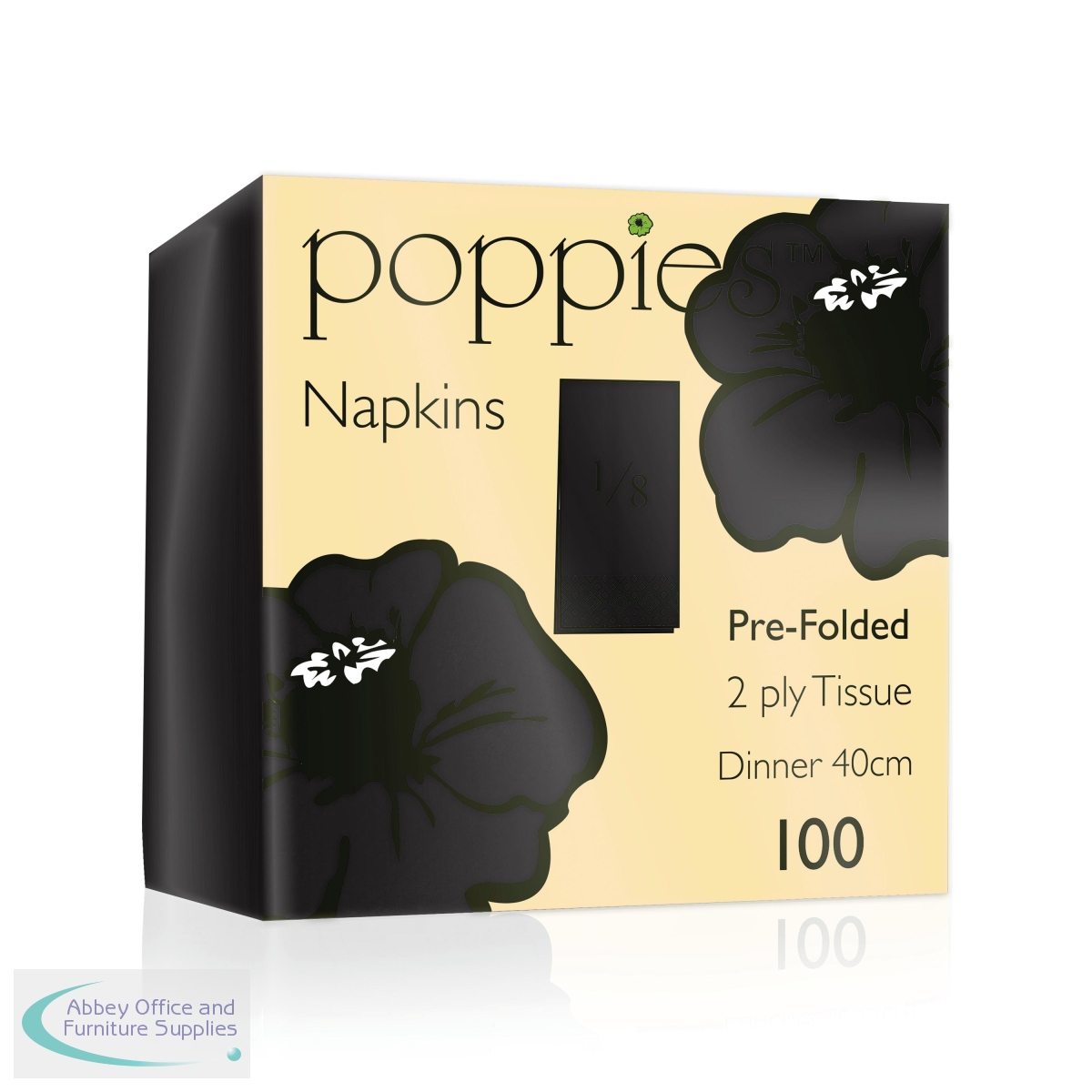 PIE32768 - Poppies 2-Ply Tissue Dinner Napkins Pre-Folded Black 40cm (Pack of 100) 4028BK