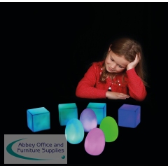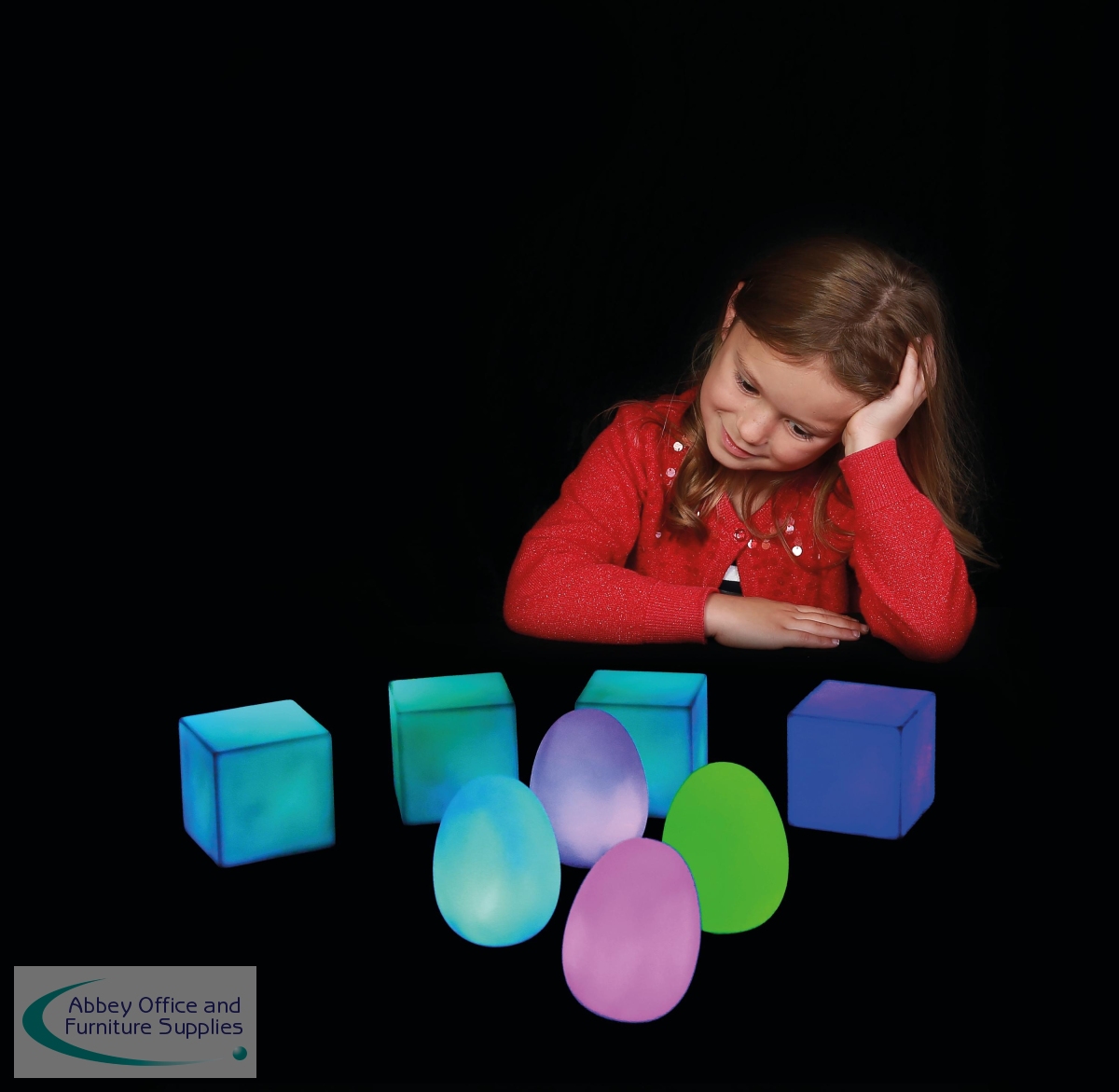 These unusual cube-shaped lights glow and change colour gently, bringing a captivating and soothing atmosphere to any space. An excellent choice for sensory rooms, classrooms, bedrooms or relaxation areas. Each block in this four-pack set has a smooth, translucent surface that allows the light to diffuse evenly, producing a soft, inviting glow.