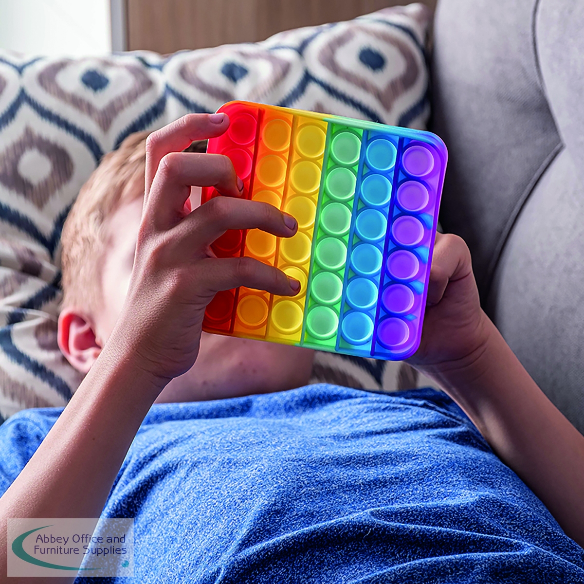 This multicoloured Pop Fidget Pad is the perfect fidget toy for those who loved popping bubble wrap as a child. Perfect size for travelling or for use at home. Provides a satisfying sensory and tactile experience. Make patterns, play games or just pop for fun.