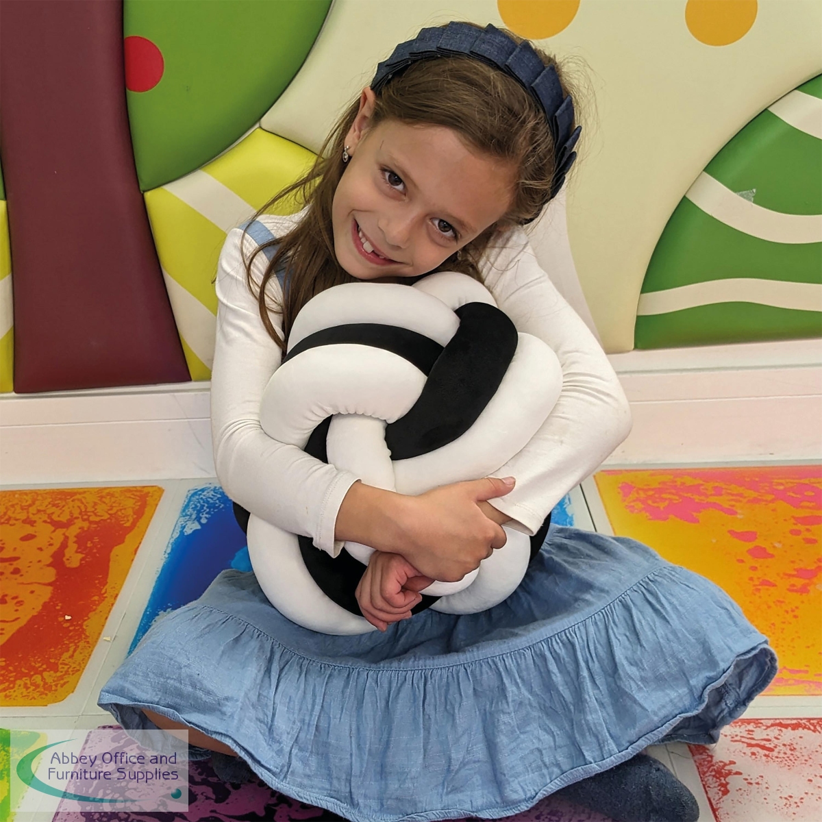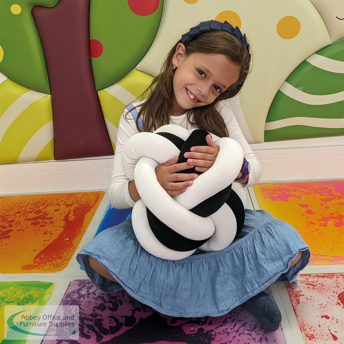 Introducing this adorable Black and White Cuddle Ball, designed to be the perfect cuddly companion. Made from the softest materials, this cute ball is not only irresistibly huggable but also aids in developing your child's motor skills.Its comforting design invites you to slip your hands in and hold it close, offering a sensory experience like no other. Excellent for use by the visually impaired, its high-contrast black and white colours are ideal for visual stimulation and focus.