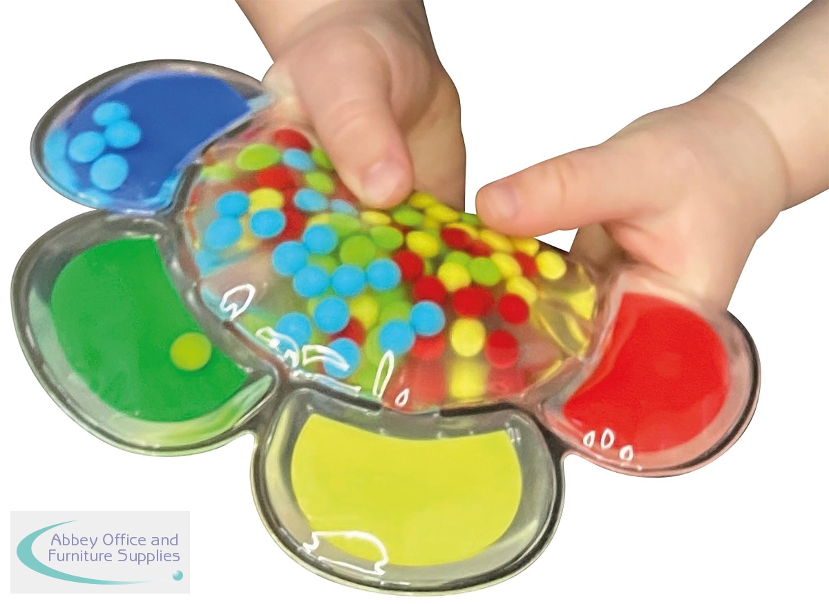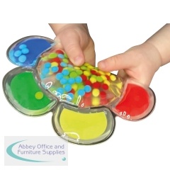 Colourful flower shaped colour matching game. Start with all the beads in the centre and and try matching each bead with the same colour petal, pushing them through a small gap into the correct colour. Helps develop hand eye coordination, familiarity with colours and great for education with colour matching, sorting, counting, addition and subtraction.