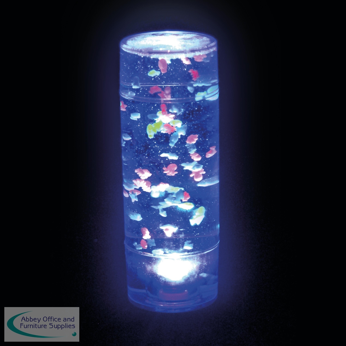 The LED light is great to watch, providing excellent visual relief for individuals with visual needs. Shake the lamp to mix up the fish and activate the colour changing LEDs in the base of the light that illuminates the liquid inside. It's a brilliant little desk novelty and mood light that is very simple to use. Batteries included. Colours may vary.