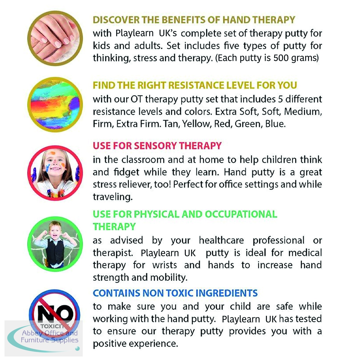 PLN57622 - Therapy Putty 5 Resistance Levels Assorted Colours Odourless STHP