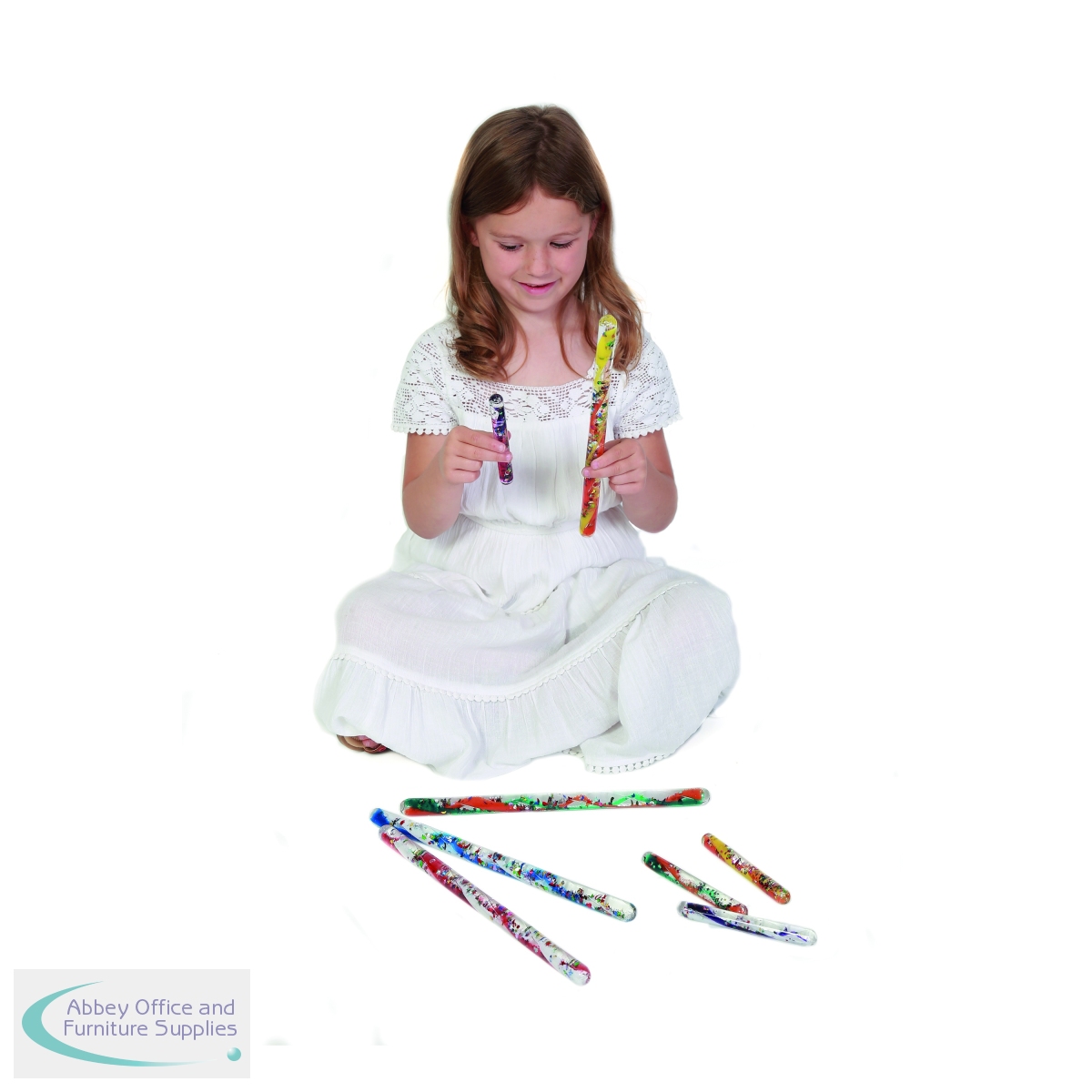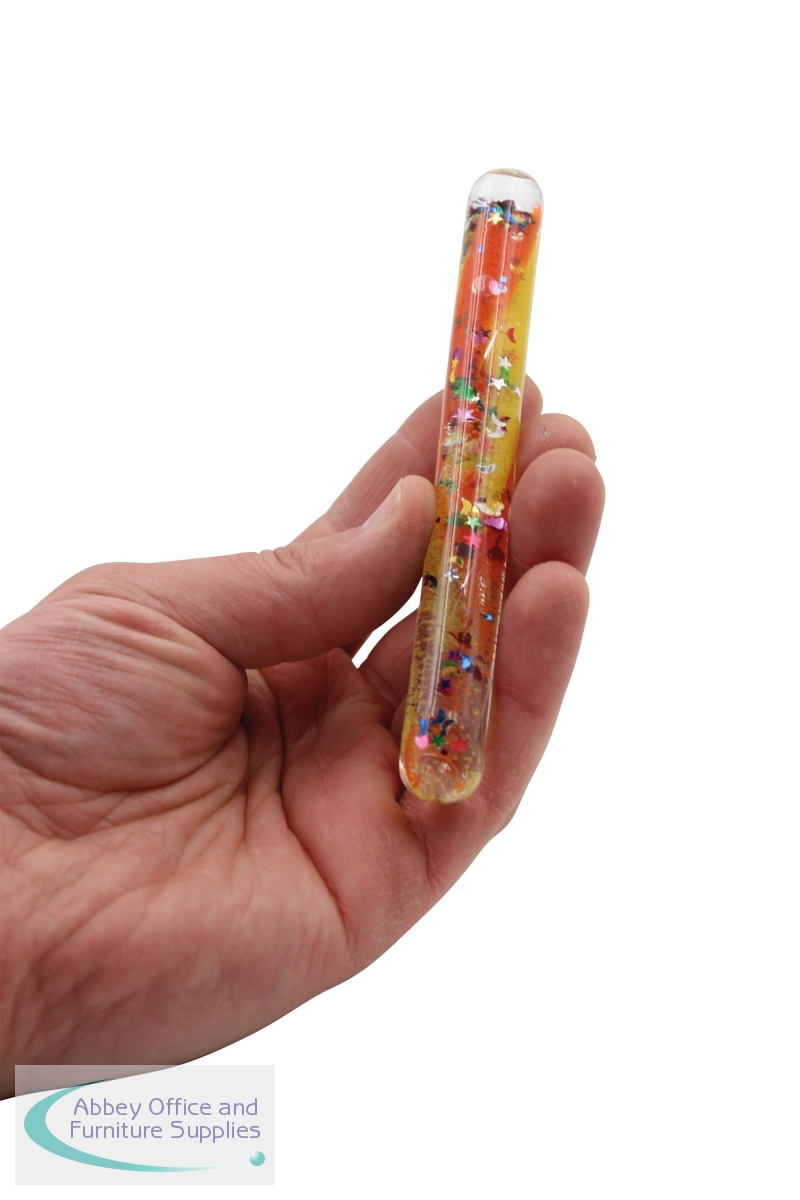 The Sensory Glitter Tubes are a fascinating tough acrylic tube filled with colourful rainbow glitter and small star shapes that cascade down the wand when it is turned over. The rhythmic flow and motion of the shiny contents as they swirl and sparkle along the tube is pretty and mesmerizing, great for tracking and focus skills, and will fascinate all ages. A wonderful and robust multi-sensory resource.