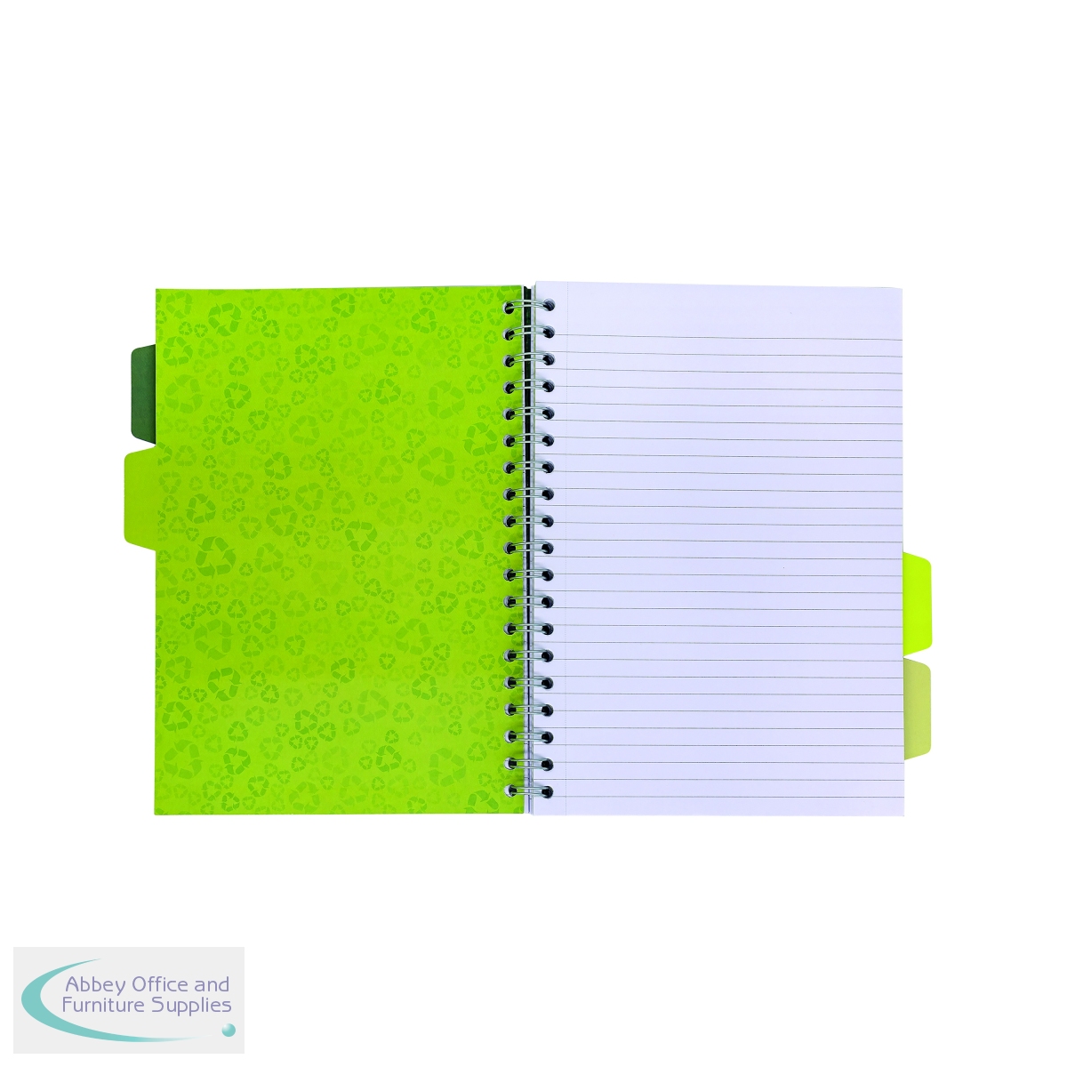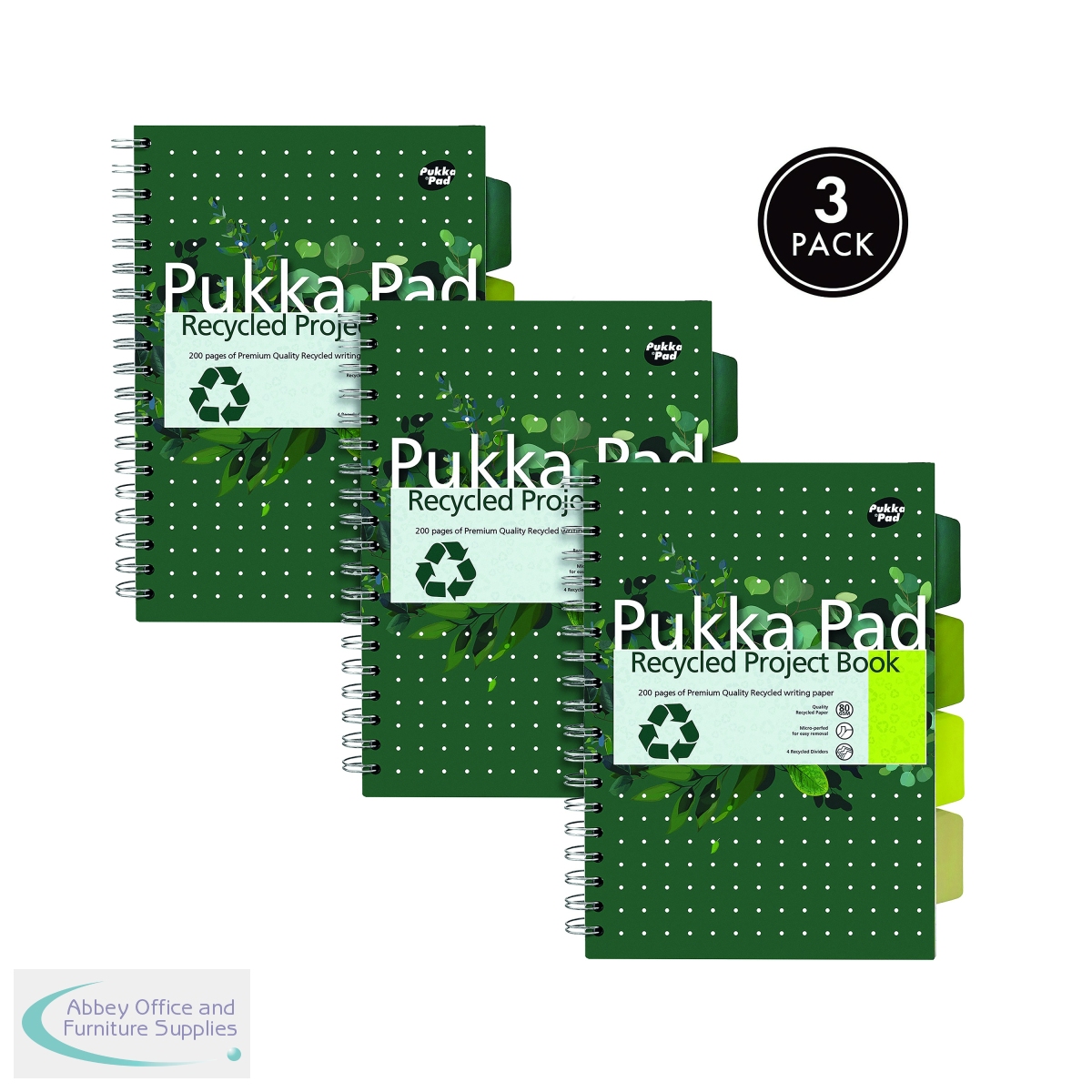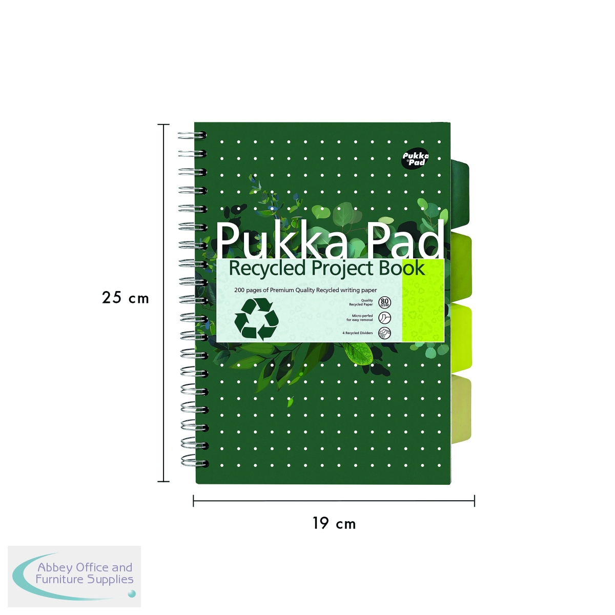 This B5, recycled project book features��5 dividers��on the inside of the pad to help separate different projects or topics. Each pad includes 200 pages of premium quality, 80gsm, recycled paper with 8mm lines and margin. The sheets are perforated for easy removal with 4 punched holes and printed on the inside cover are 12 helpful tips on how to help save the planet. This pack contains 3 books.