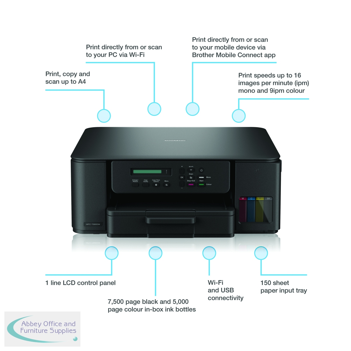BA83876 - Brother DCP-T580DW 3-in-1 Wireless Colour Ink Tank Printer DCPT580DWZU1