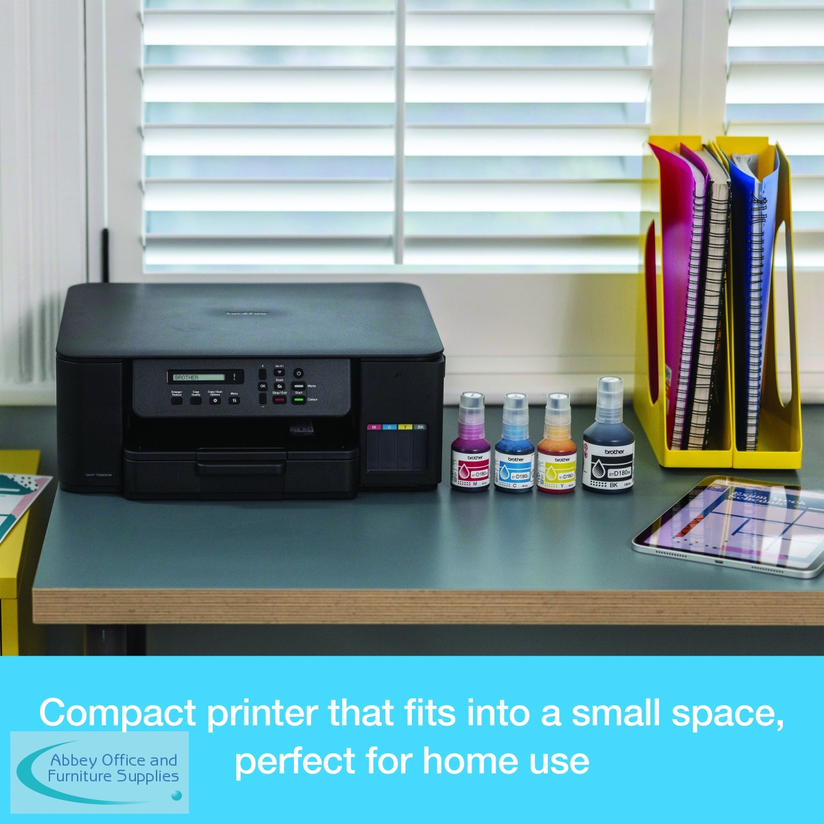 Print more for less with super-high yield ink bottles and easy fill ink tanks that lower your colour printing costs. Whether in your home, office, living room, or working from the kitchen, enjoy effortless connectivity and quick hassle-free printing with this ink tank printer.