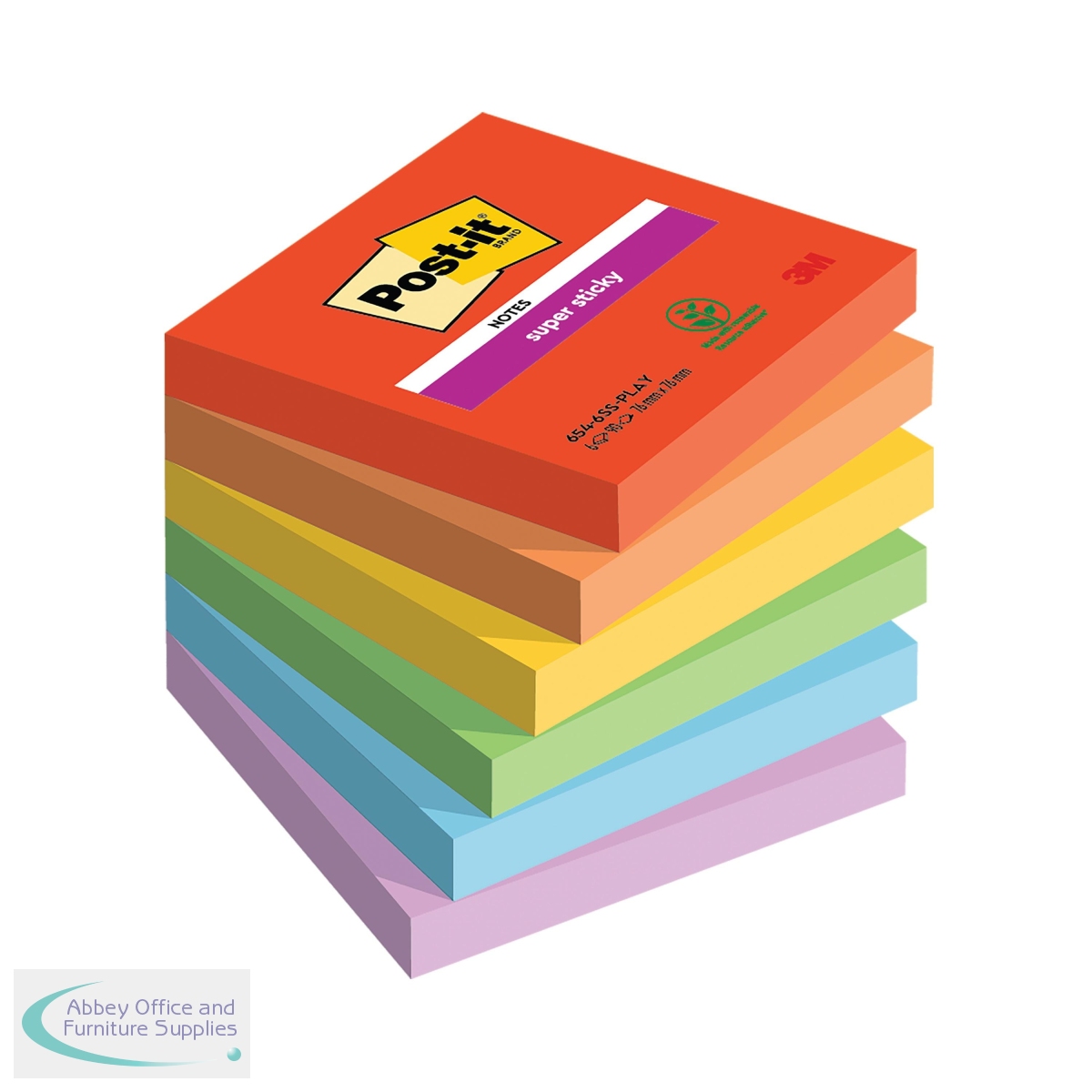 3M92443 - Post-It Super Sticky Notes 90 Sheets 76x76mm Playful Colours Assorted (Pack of 6) 654-6SS-PLAY