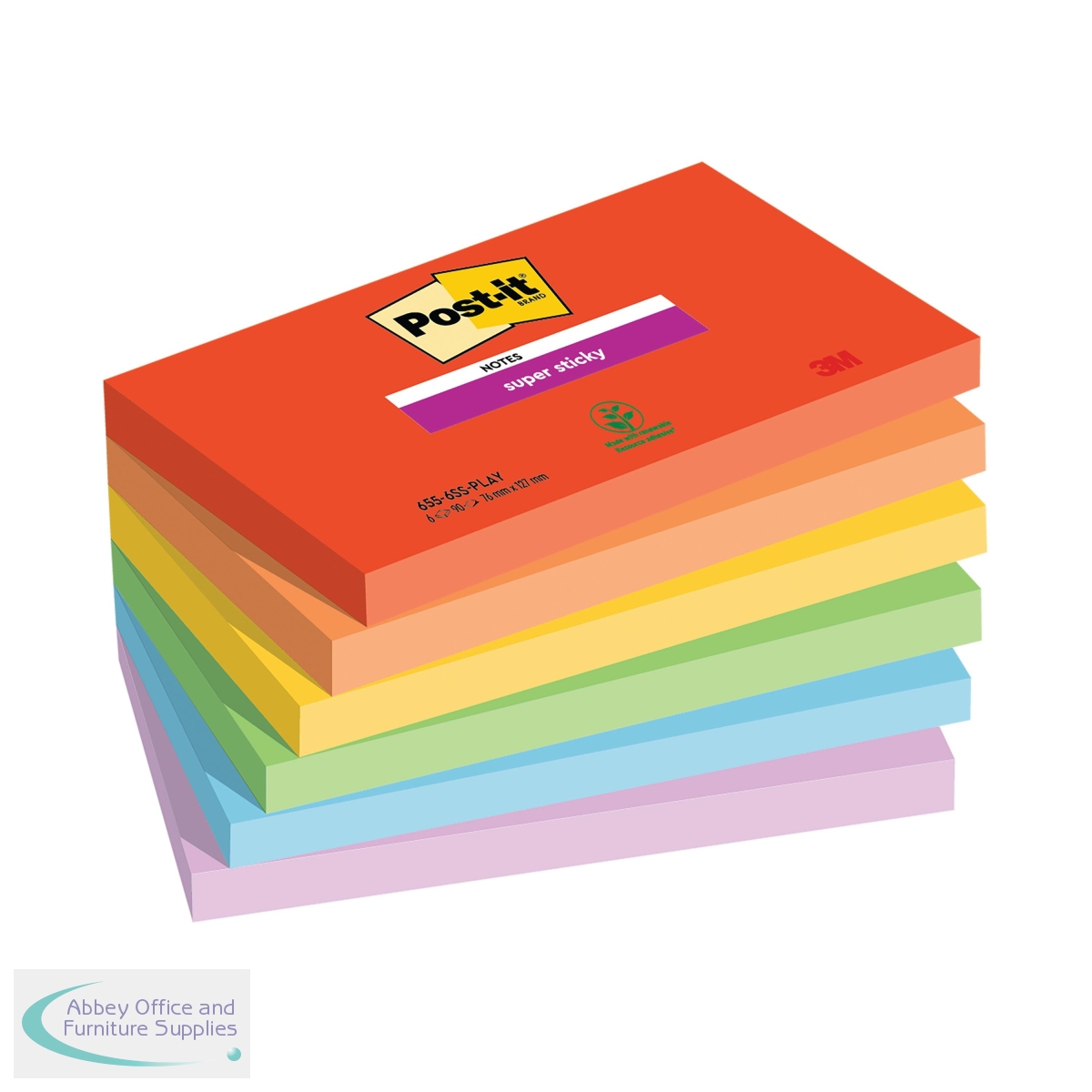[ Post-it; Books, Pads & Albums; Repositional Notes; Super Sticky; OEM Code 655-6SS-PLAY; EAN 04054596924468; VOW Code 3M92446 ]
