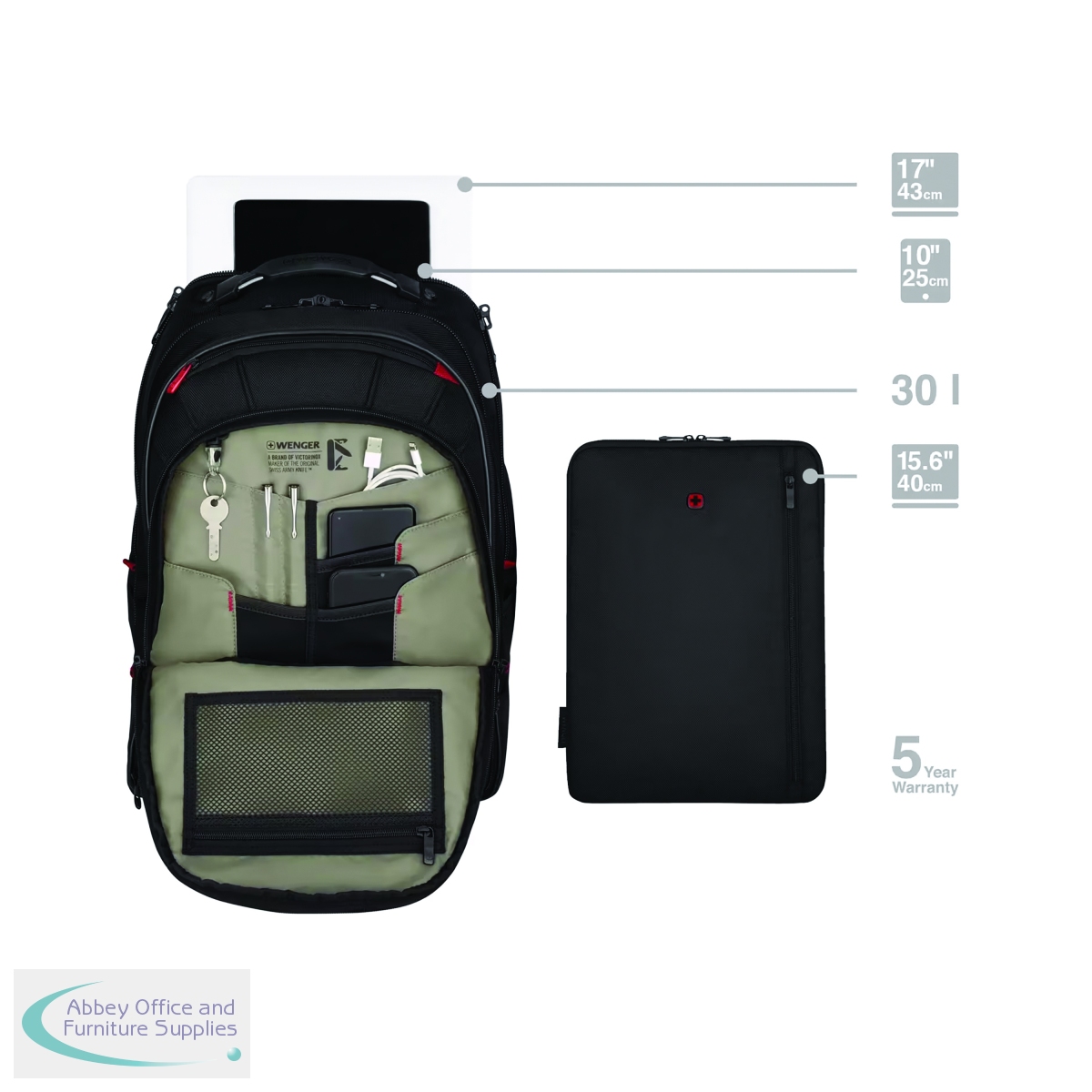 CMS25524 - Wenger Carbon Pro Business Backpack with 15.6 Inch Laptop Sleeve and Tablet Pocket Black 653129