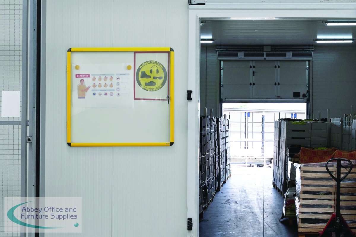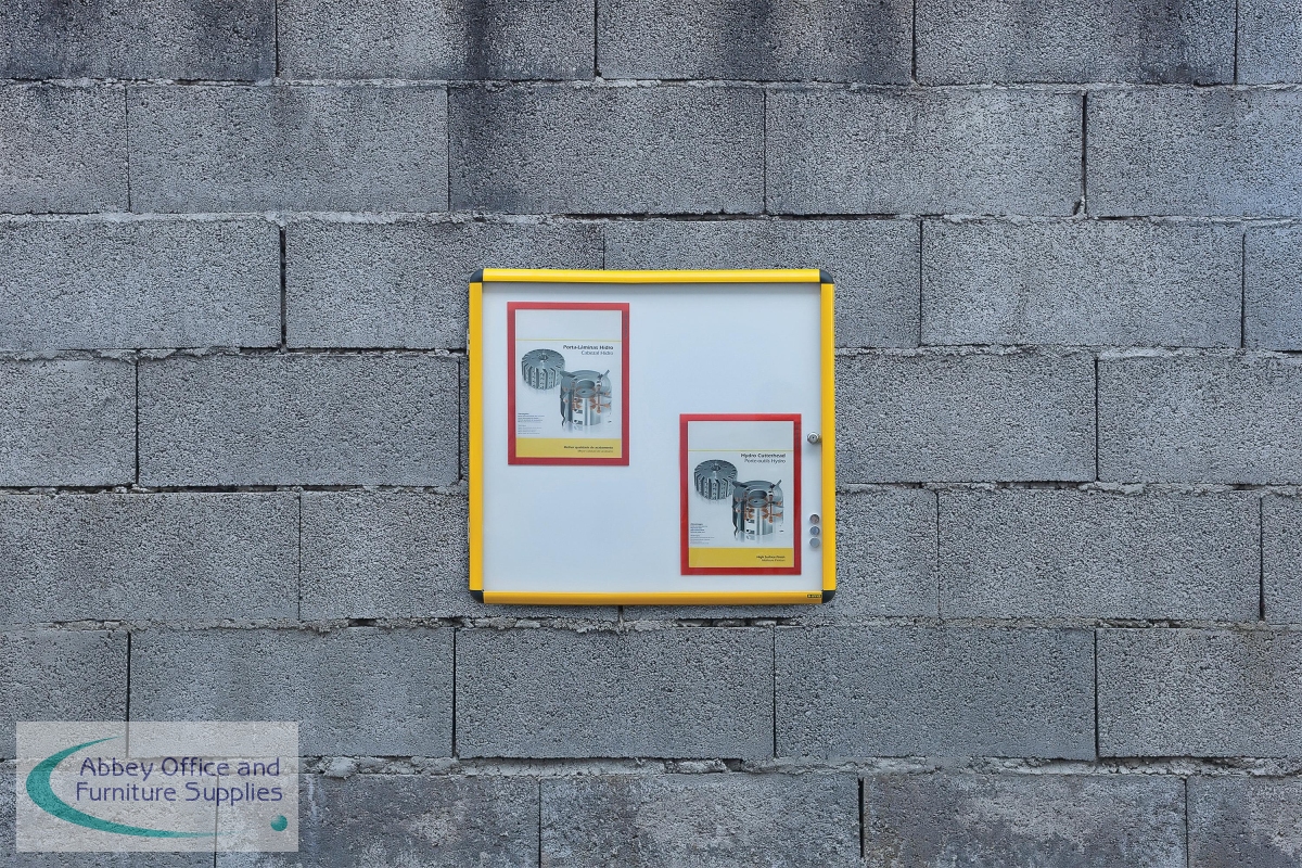Bi-Office Ultrabrite lockable display cases have a highly visible aluminium yellow frame, ideal for an industrial environment to display and highlight important information or safety instructions, as well as keep the documents saved from dust or water splashes. The magnetic lacquered steel surface means that you can attach your notices with a simple magnet and when you remove it, it's as good as new. It's lockable, strong, and lightweight solution. There is clear visibility of the displayed items due to the swinging acrylic door, which can be locked to protect the inside materials from hampering, manipulation, or the weather. This lockable board comes with 2 keys, so you can keep a key in a safe location, to use as a spare if the other one gets lost. The set also includes a wall mount kit for easy installation.