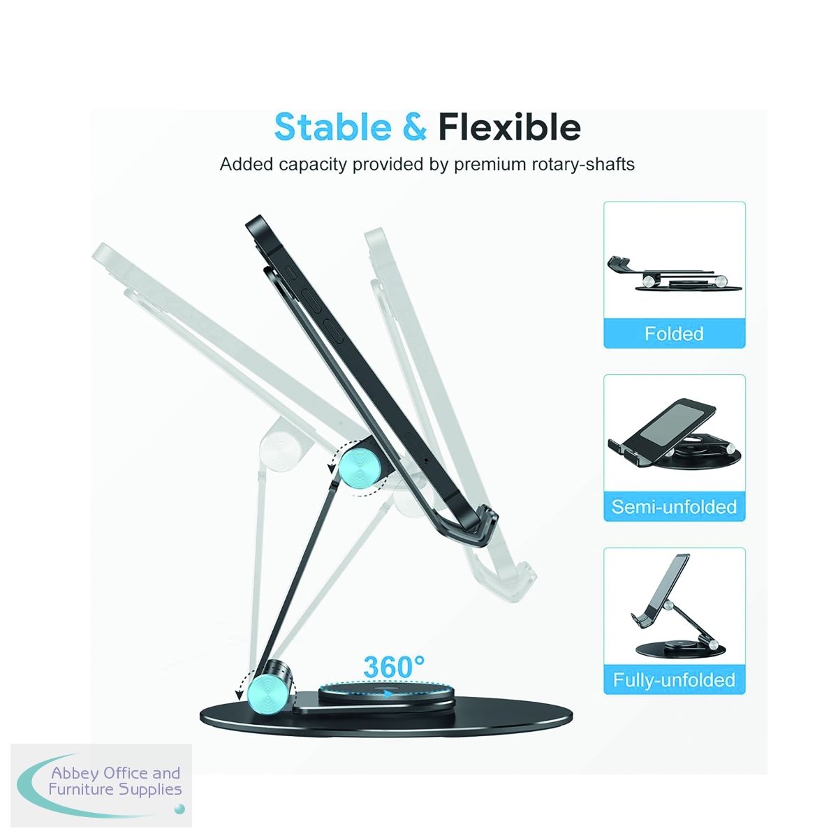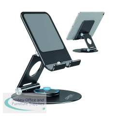 Hinged tilting and rotating aluminium tablet/mobile phone stand suitable for tablets/phones from 4 inch - 13 inch in black
