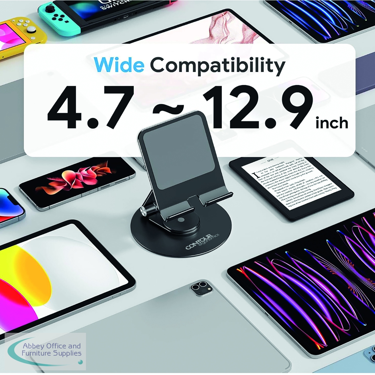 CE10140 - Contour Ergonomics Rotating Hinged Tilting And Rotating Tablet/Phone Stand 4-13 Inches Blk CE10140