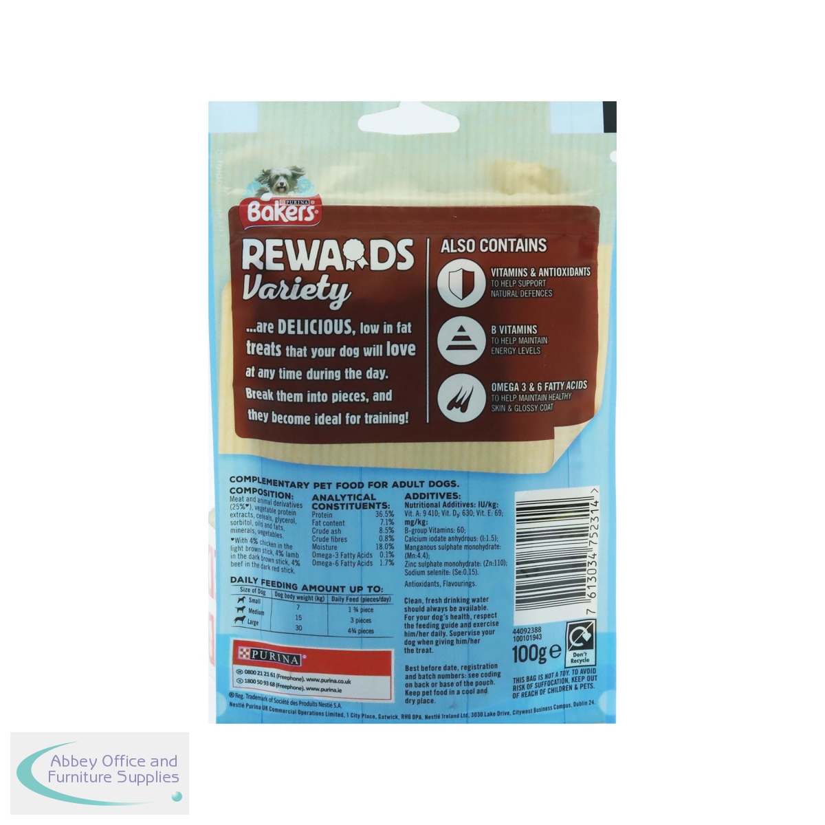 RTC00729 - Bakers Rewards Variety Dog Treats with Beef Chicken and Lamb 100g (Pack of 18) 540551