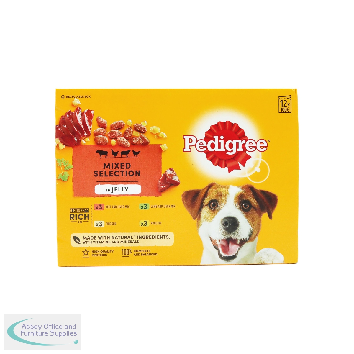 RTC12388 - Pedigree Adult Wet Dog Food in Jelly Mixed Selection 100g Pouches (Pack of 12) 545402