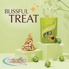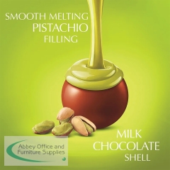 Melt in a moment of bliss with the irresistible combination of nutty pistachios and the finest Swiss chocolate. Unwrap the glistening green wrapping to reveal a delicate milk chocolate shell hiding a luxuriously smooth pistachio filling. Indulge the senses, eating them chilled or at room temperature and let the chocolate truffle melt in the mouth slowly or at first bite. Supplied in a box of 200g of pistachio chocolate truffles.
