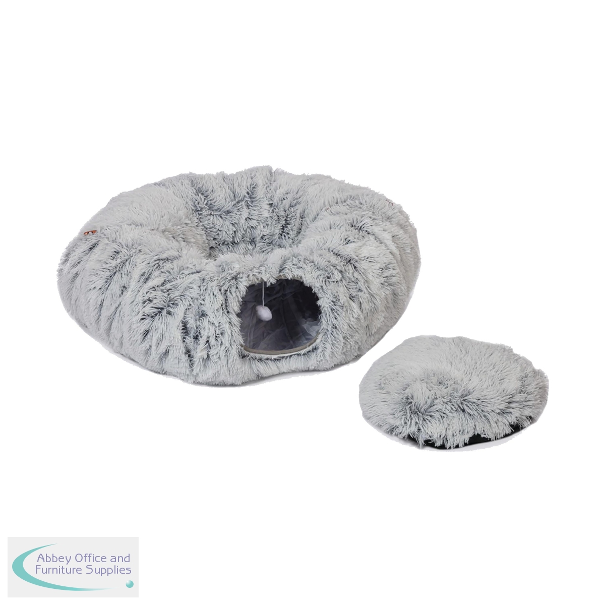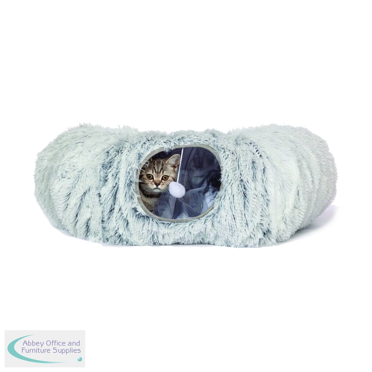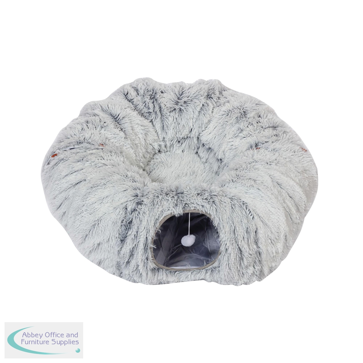 The perfect place for both play and relaxation for cats, this playful tunnel features a snug and cosy fibre-filled middle for snoozing. Made with soft plush fur fabric, the tunnel folds flat for easy storage. The mattress is removable and fully machine washable for hygiene. Supplied in grey.