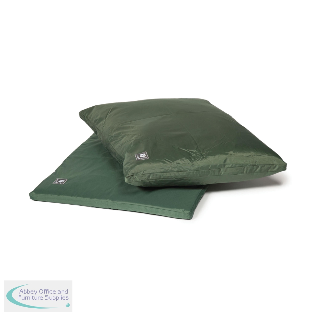 A perfect mattress style bed for muddy paws, this medium, deep filled dog bed is made in a heavy duty, hard wearing 100% waterproof fabric which can easily be wiped clean. Filled with recycled fibre for softness and comfort, the bed is supplied in green.