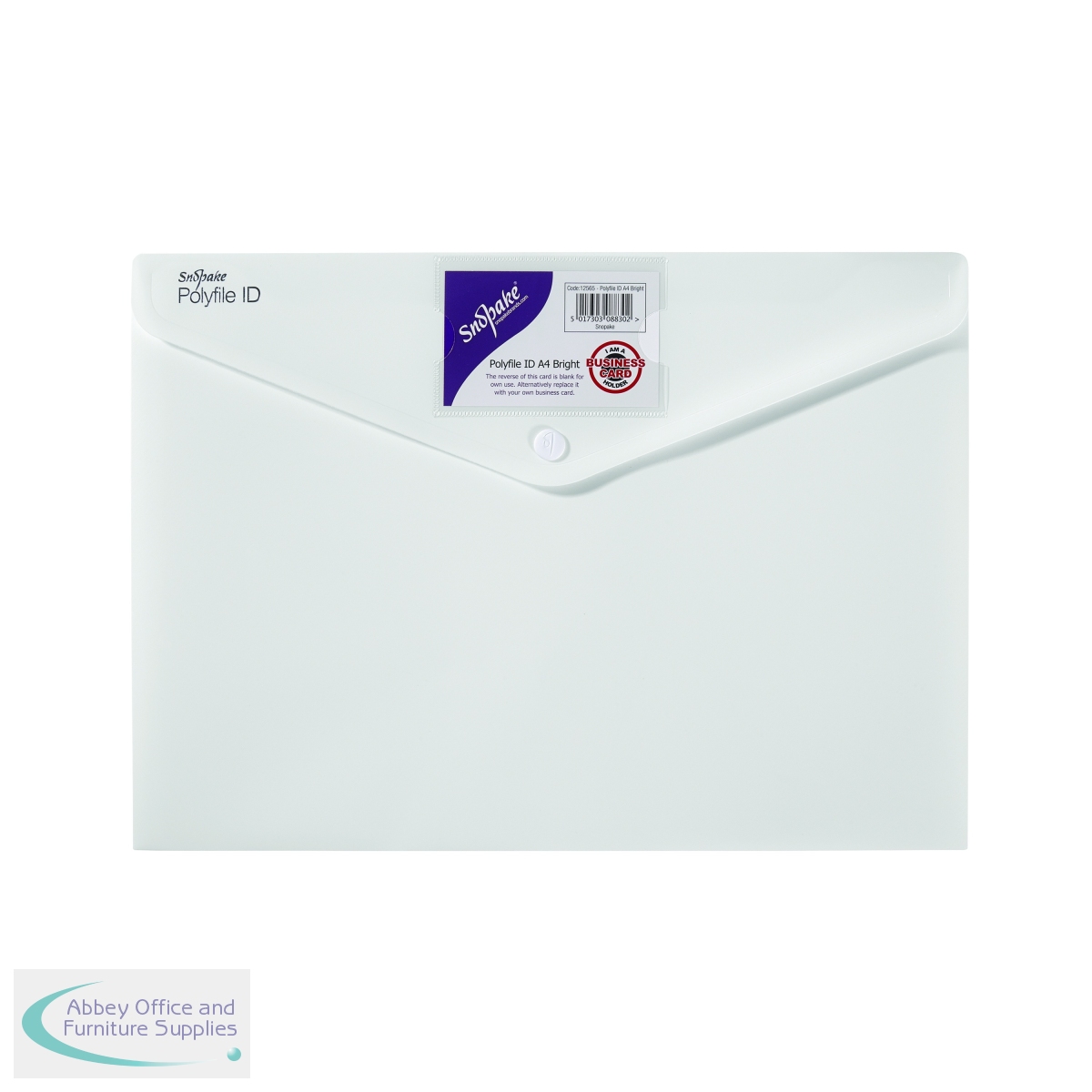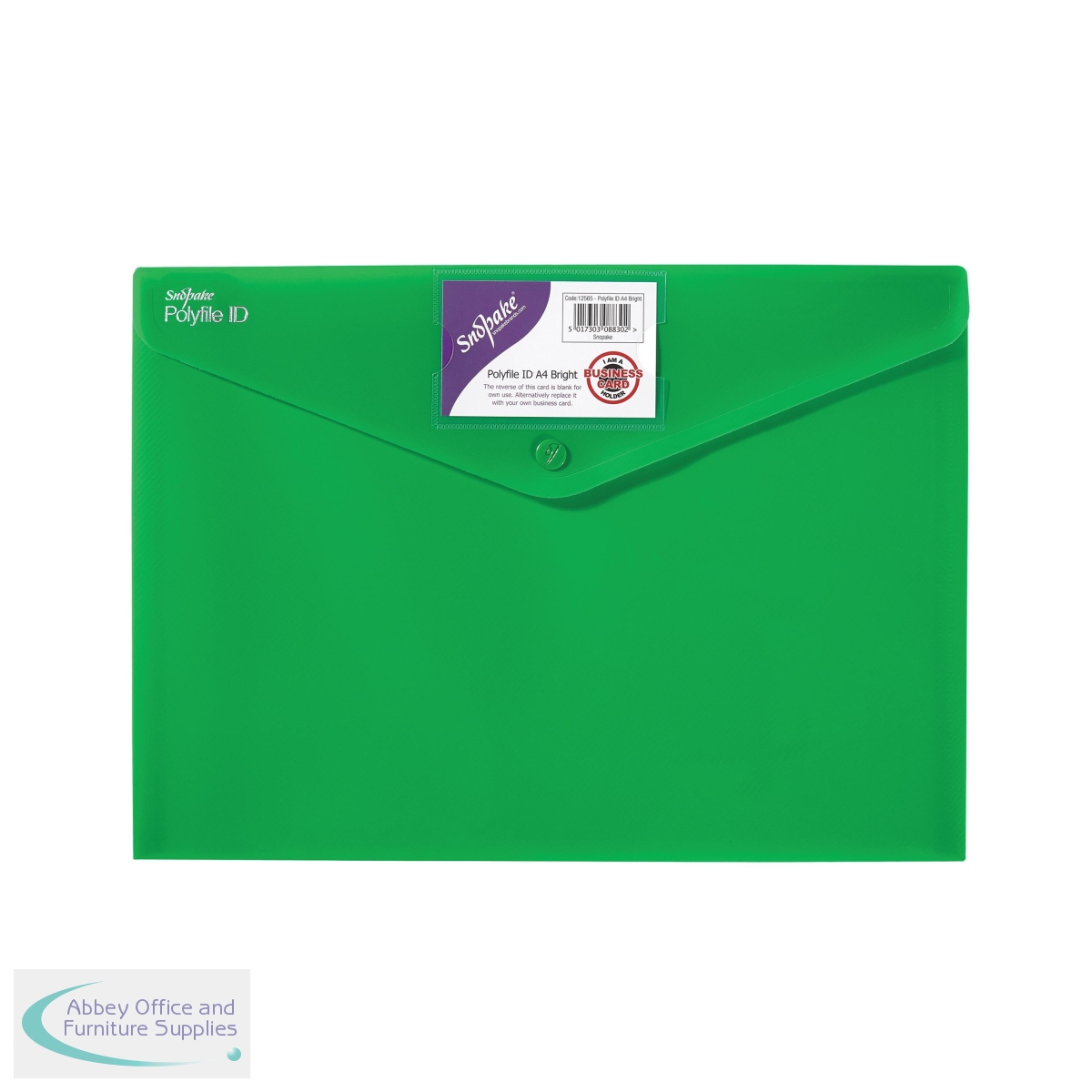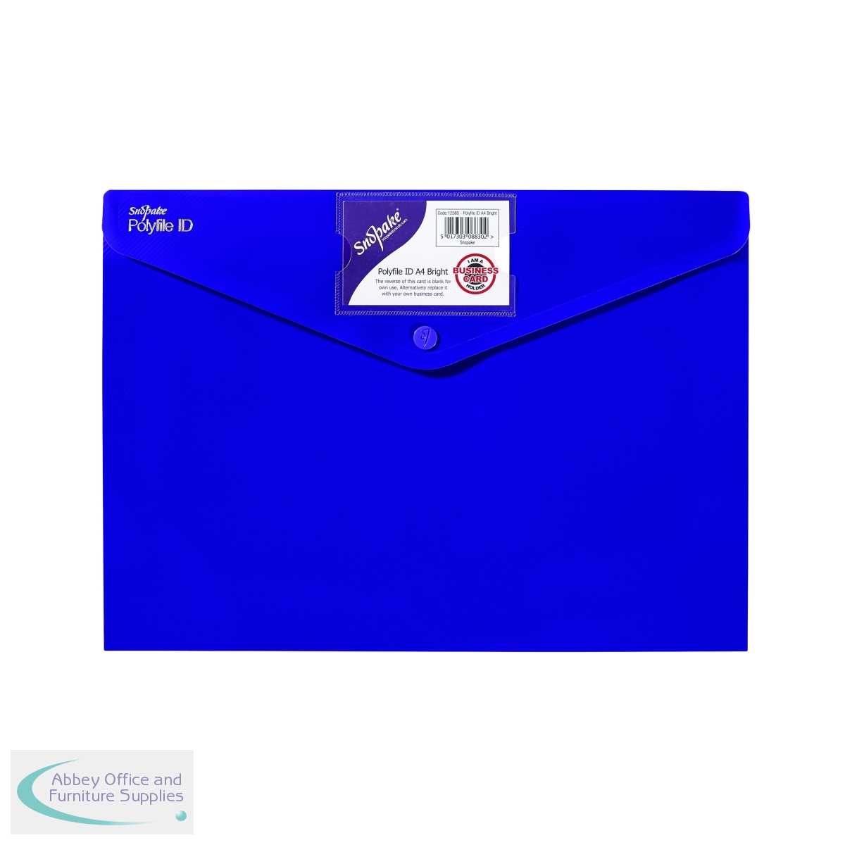 The original envelope-style popper-wallet, Snopake's Polyfiles are ideal for securing your documents, photographs and artwork in the home, school or workplace. Features a business card holder on the front flap, ideal for personalisation and easy identification of contents. Uniquely double-welded seams make Snopake's Polyfiles the toughest files of this type available anywhere providing you with extra strength and greater durability. Featuring Snopake's unique colour coordinated press-stud closure which is engineered to last, you can rest assured your documents are secure, even whilst on the move. Wipe-able material helps protect your documents from dust and moisture, ideal for storing important paperwork. Manufactured from top-quality durable polypropylene, the Snopake Polyfile has an attractive superline finish offering long term protection for your documents.