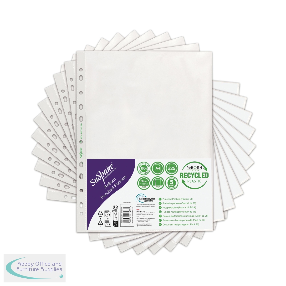 SK22433 - Snopake Reborn Punched Pockets A4 Polypropylene Clear (Pack of 25) 15938