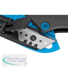 With its 15mm cutting depth, this retractable knife can cut through tough materials such as three-ply cardboard with minimum effort. As a safety feature, the blade is only revealed when the lever is squeezed, and hidden as soon as it's released. A locking mechanism makes it possible to prevent the lever from being activated accidentally. Each blade has two cutting edges as well, making each last twice as long.