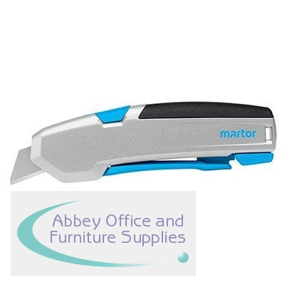 With its robust aluminium body and ergonomic design, this Martor safety knife is suitable for heavy-duty use while still being Comfortable enough to use over extended periods. Its large cutting depth of 21mm means that it can tackle carpet, leather, and three-ply cardboard with no problem, with its fully automatic blade retraction mechanism ensuring your safety by concealing the blade as soon as the cutting stops.
