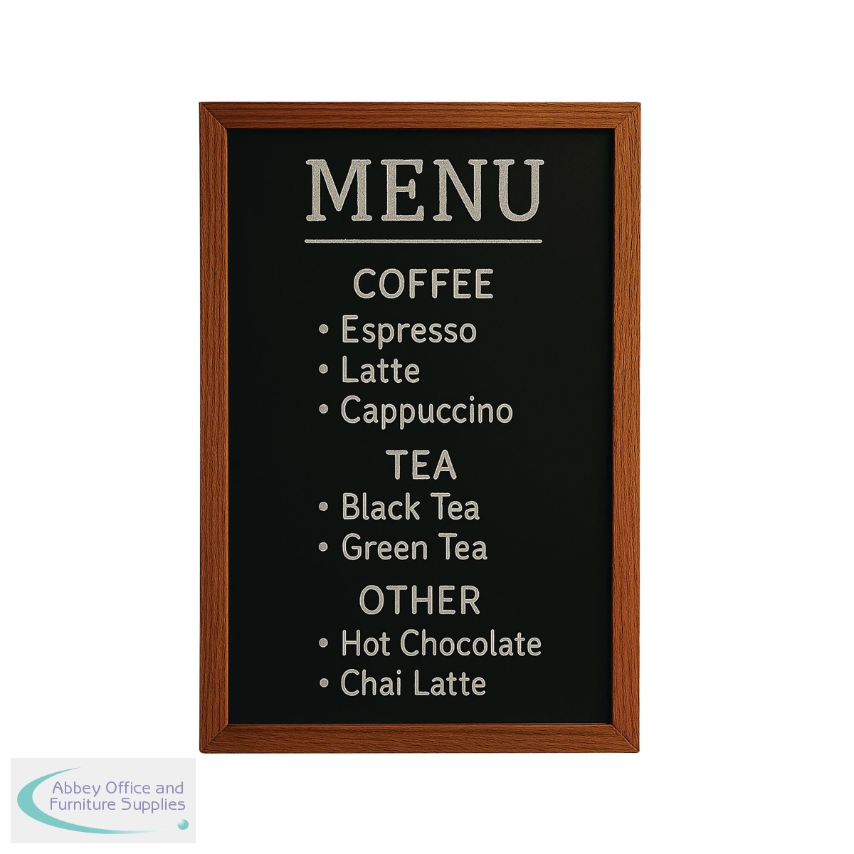 Introducing the Deflecto Wall Mounted Chalkboard, perfect for displaying menus and special offers with a stylish teak effect frame.