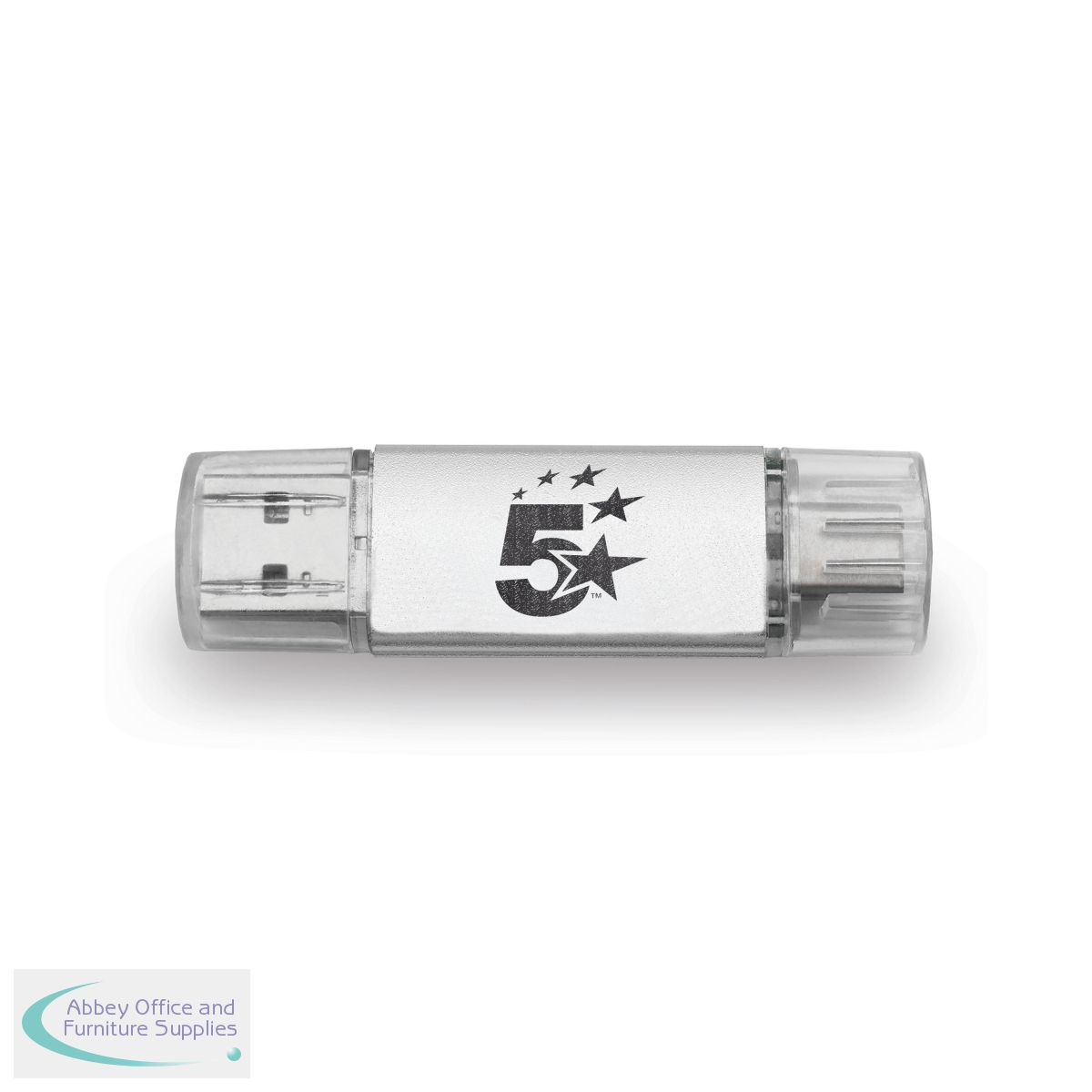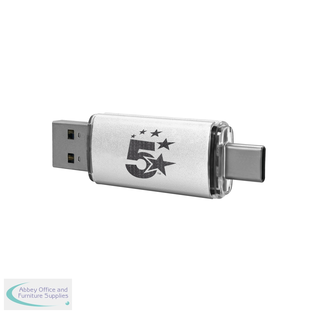 FS667950 - 5 Star USB 3.2 Gen 1 Combo Flash Memory Drive with USB A/C 64GB Silver 667950