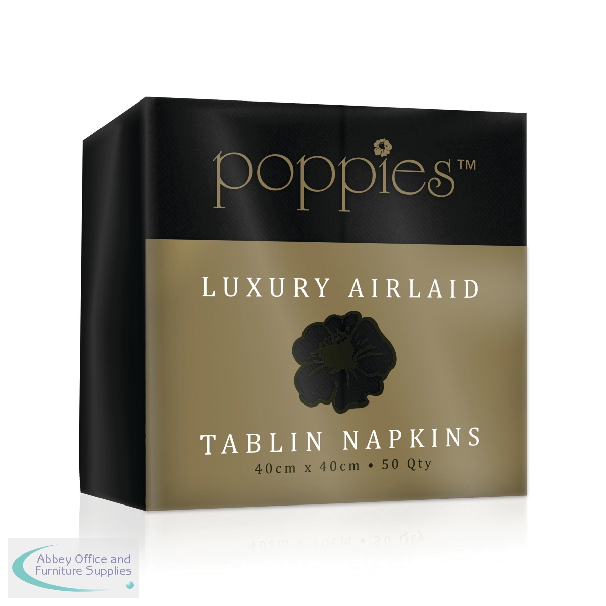 PIE32638 - Poppies Tablin Napkins 8 Fold 40cm Black (Pack of 500) 4048BK