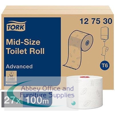 ARC47588 - Tork Advanced T6 White Mid-Size Toilet Roll 100m (Pack of 27)